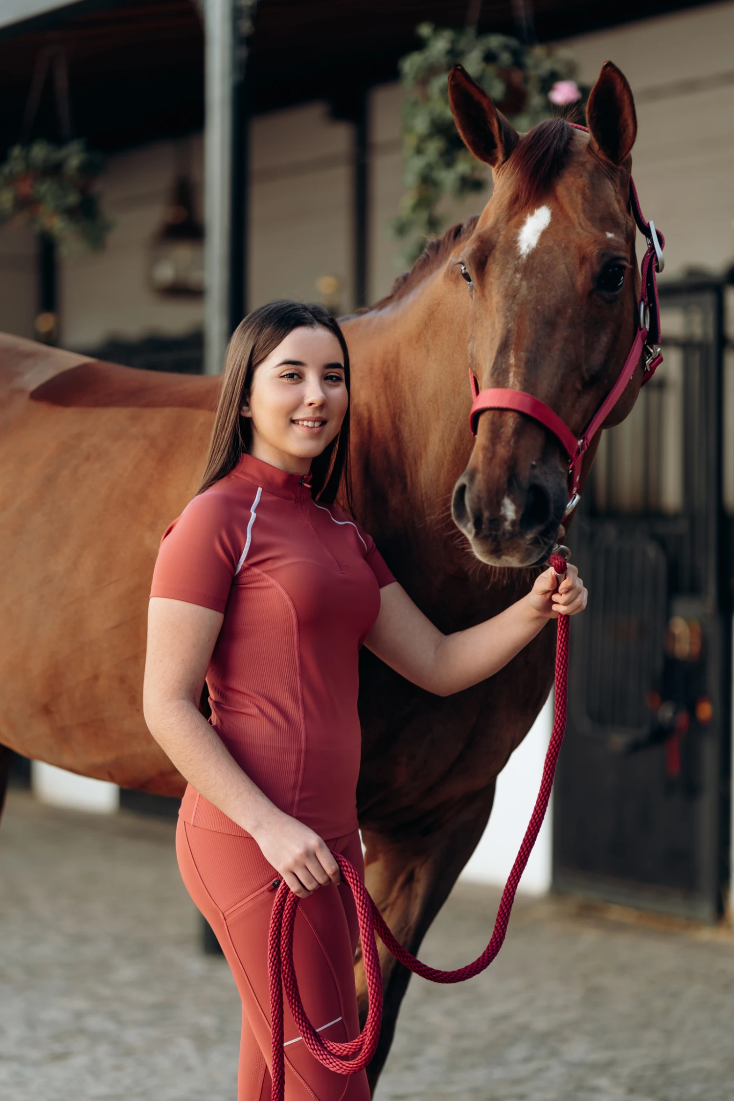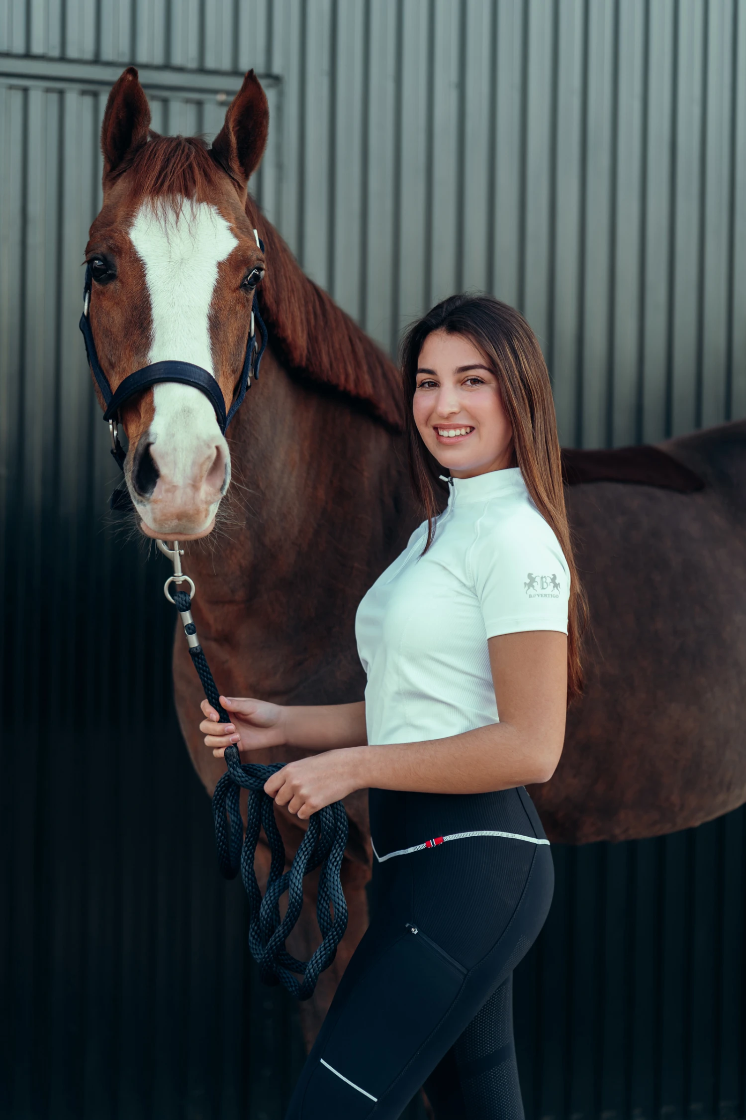 Das atmungsaktive B Vertigo Adara Trainingsshirt ist aus schnelltrocknendem Material gefertigt. Gerippte Seiten sorgen für die perfekte Passform. Der Frontreißverschluss kann je nach Bedarf für zusätzliche Belüftung oder Wärme sorgen. Die Raglanärmel und das Lazer Cut Rückenlogo sehen sportlich und cool aus. Kombiniere dieses Shirt mit unserer B Vertigo Adara Reithose für ein komplettes Outfit.