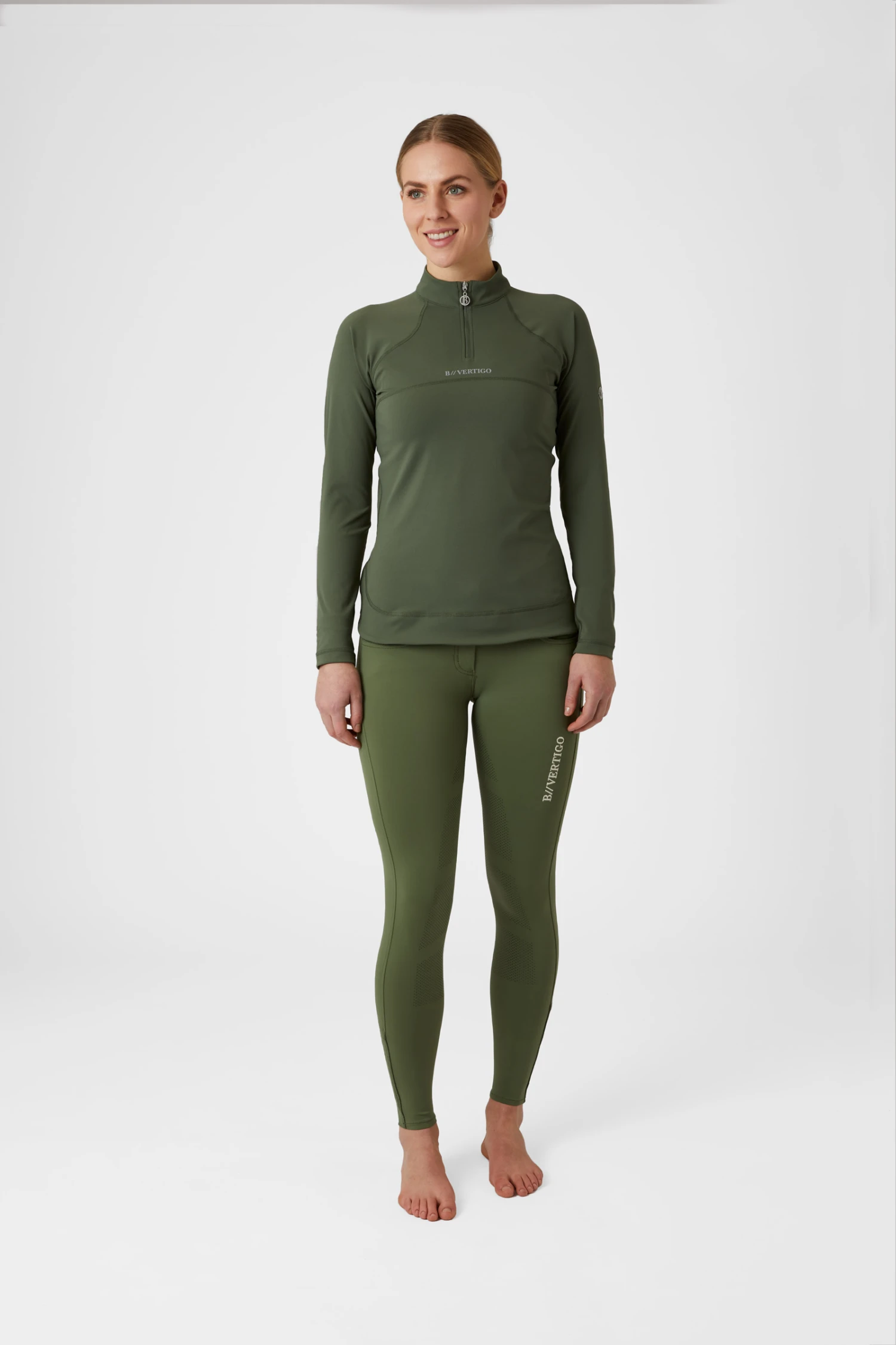 Unser B Vertigo Davina Shirt ist atmungsaktiv und schnelltrocknend, perfekt für das Training. Der weiche Stoff macht es den ganzen Tag über angenehm tragbar. Dank der Rückentasche hast du dein Handy immer in Reichweite. Der Frontreißverschluss sorgt für Belüftung und Komfort. Kombiniere dieses Shirt mit unserer B Vertigo Davina Reithose für ein komplettes Outfit.