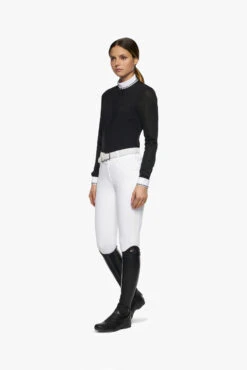 Damen Kniebesatzreithose, hergestellt aus atmungsaktivem und komfortablem technischem Jersey.