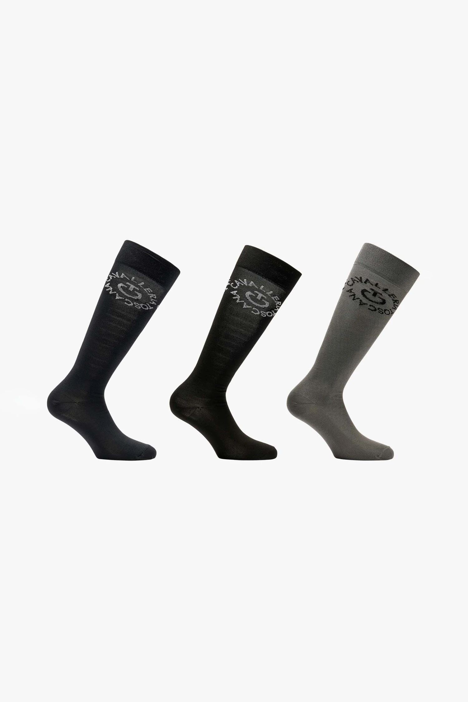 Die Liebe zum Detail und das Streben nach Qualität sind die Werte, die Cavalleria Toscana ausmachen. Vervollständige deine Reitgarderobe mit diesen Socken mit ergonomischer Passform, die sich an die Form des Fußes anpasst. Hergestellt aus technischem Garn mit hypoallergenen, antibakteriellen und atmungsaktiven Eigenschaften. Das Set besteht aus 3 Paar Socken in verschiedenen Farben mit dem Cavalleria Toscana-Logo auf Wadenhöhe eingelegt.