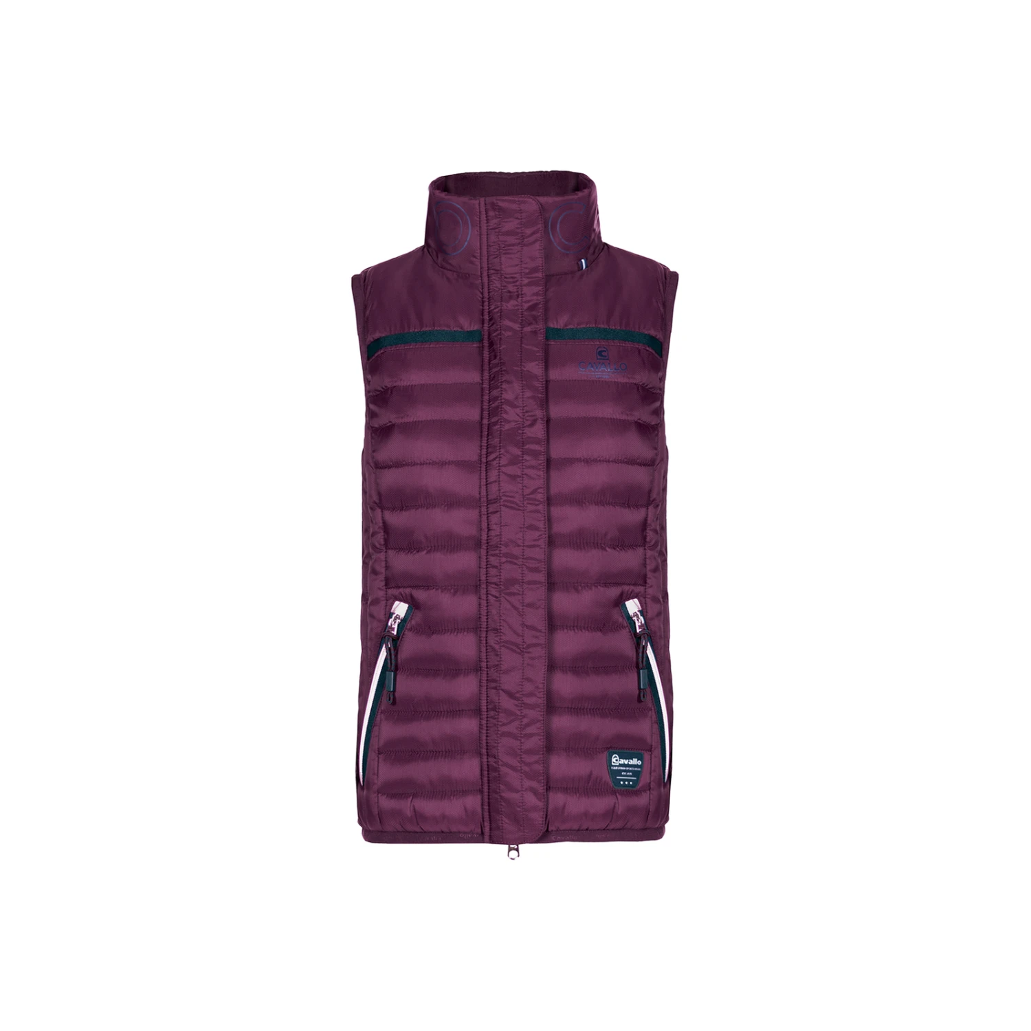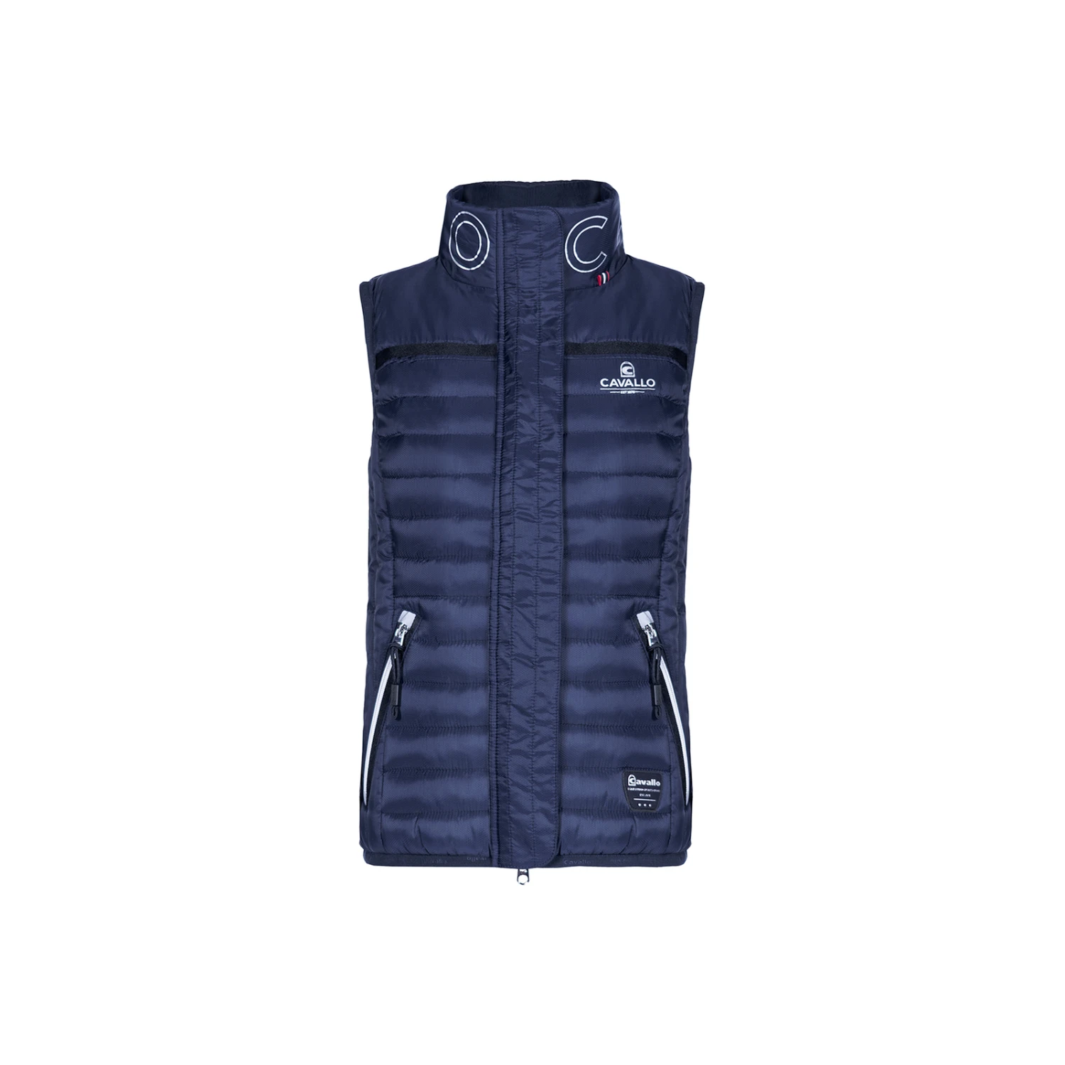 Moderne, wattierte Steppweste mit Stehkragen in sportlicher Optik. Brita ist leicht und hat eine wärmeisolierende Füllung aus Fake-Daunen. Das modische Karofutter auf der Innenseite und der verdeckte 2-Wege-Frontreißverschluss machen die Weste schick und komfortabel zugleich. Die beiden Fronttaschen lassen sich mit einem Reißverschluss schließen. Die linke Brust ziert ein dezentes Cavallo-Logo und sowie ein Schriftzug.