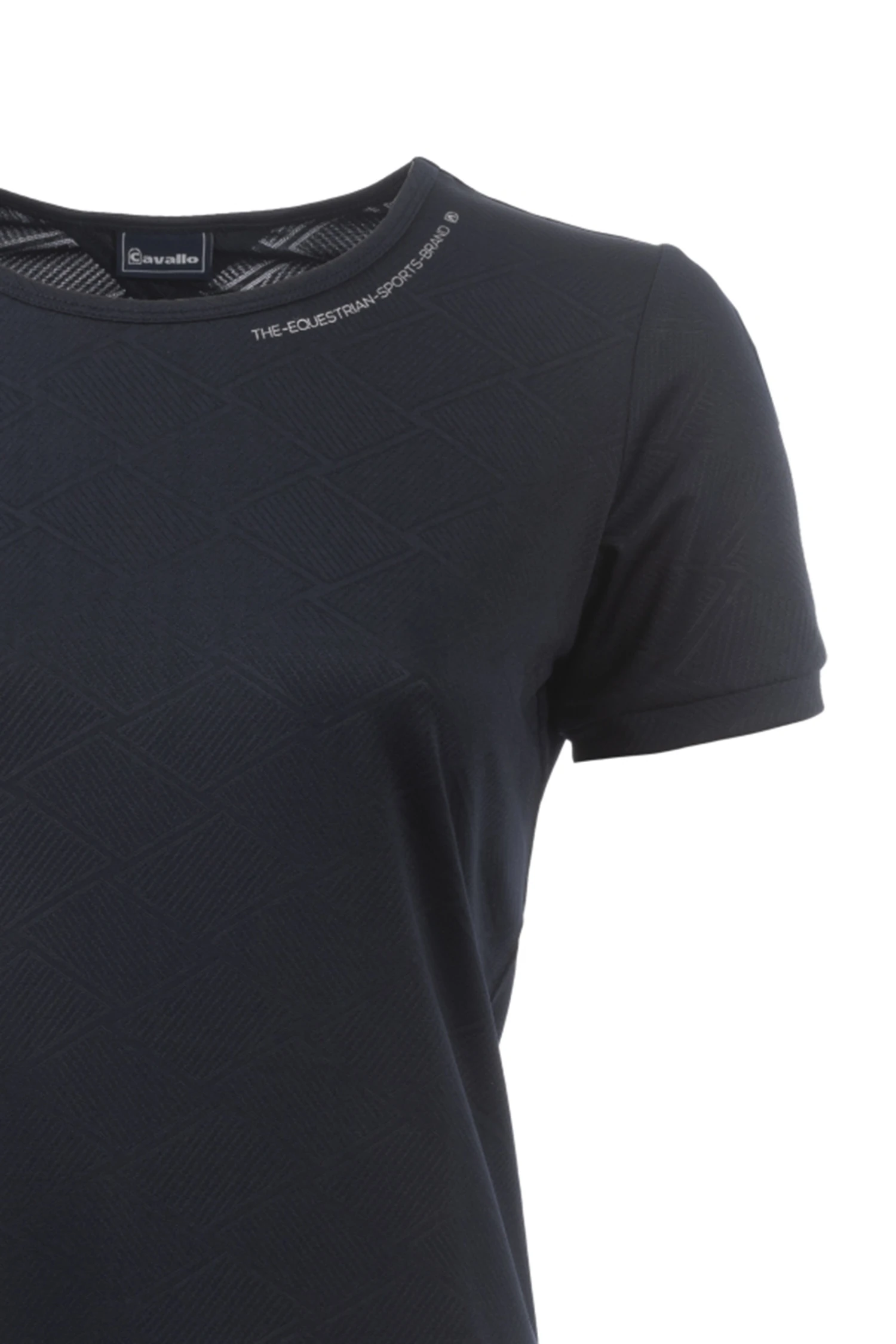 Ausschnitt in der Rückenpasse. Silbernes Artwork entlang des Halsausschnitts. Silberner Streifen mit Steigbügel C-Print in der hinteren Mitte.