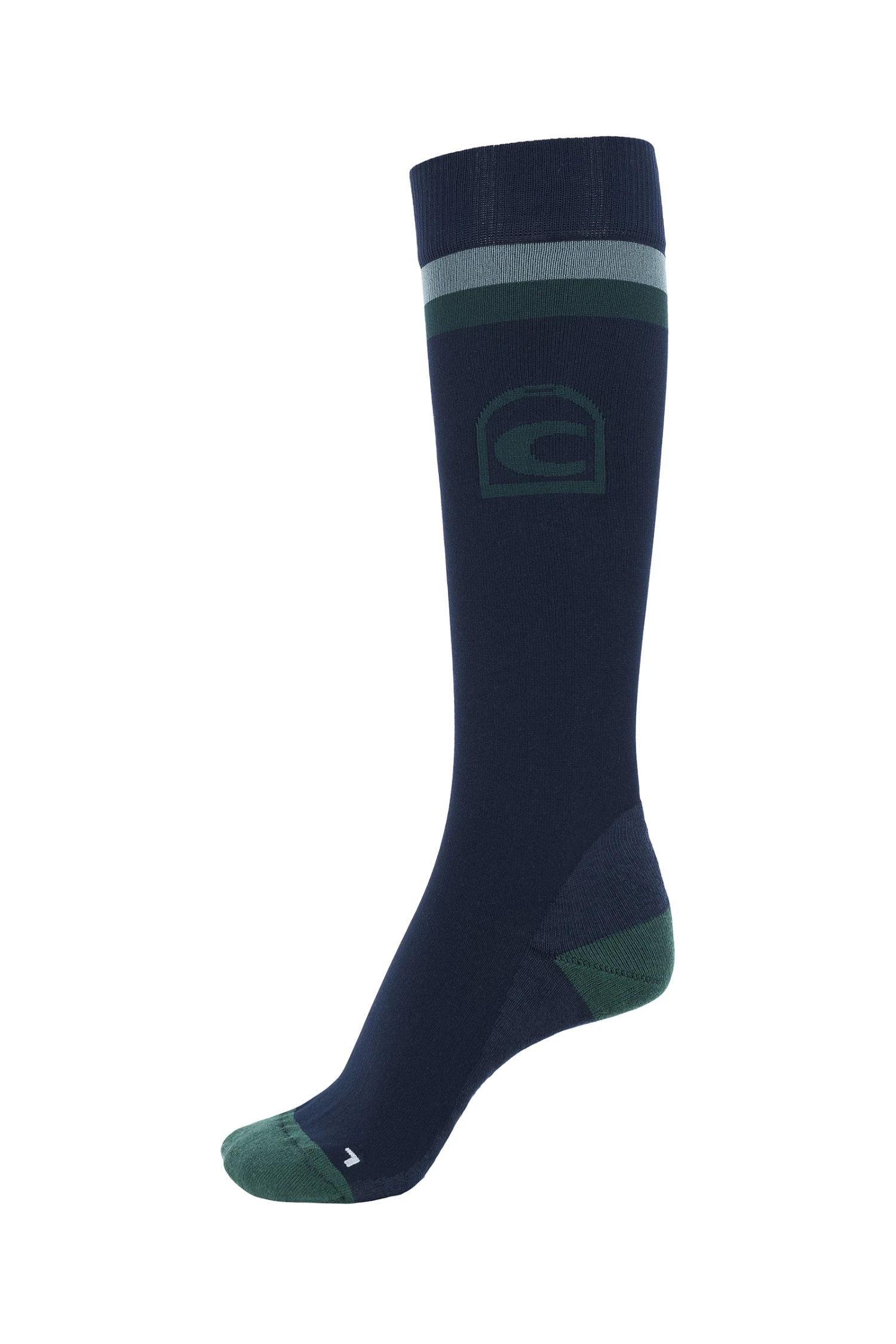 Mit extra gepolstertem Fersen- und Zehenbereich. Extra dünner Schaft, der im Stiefel nicht aufträgt. Versehen mit farbigen Streifen unter dem Bund und großem eingestricktem Cavallo Logo. R/L Kennzeichnung und handgekettelte Spitze.