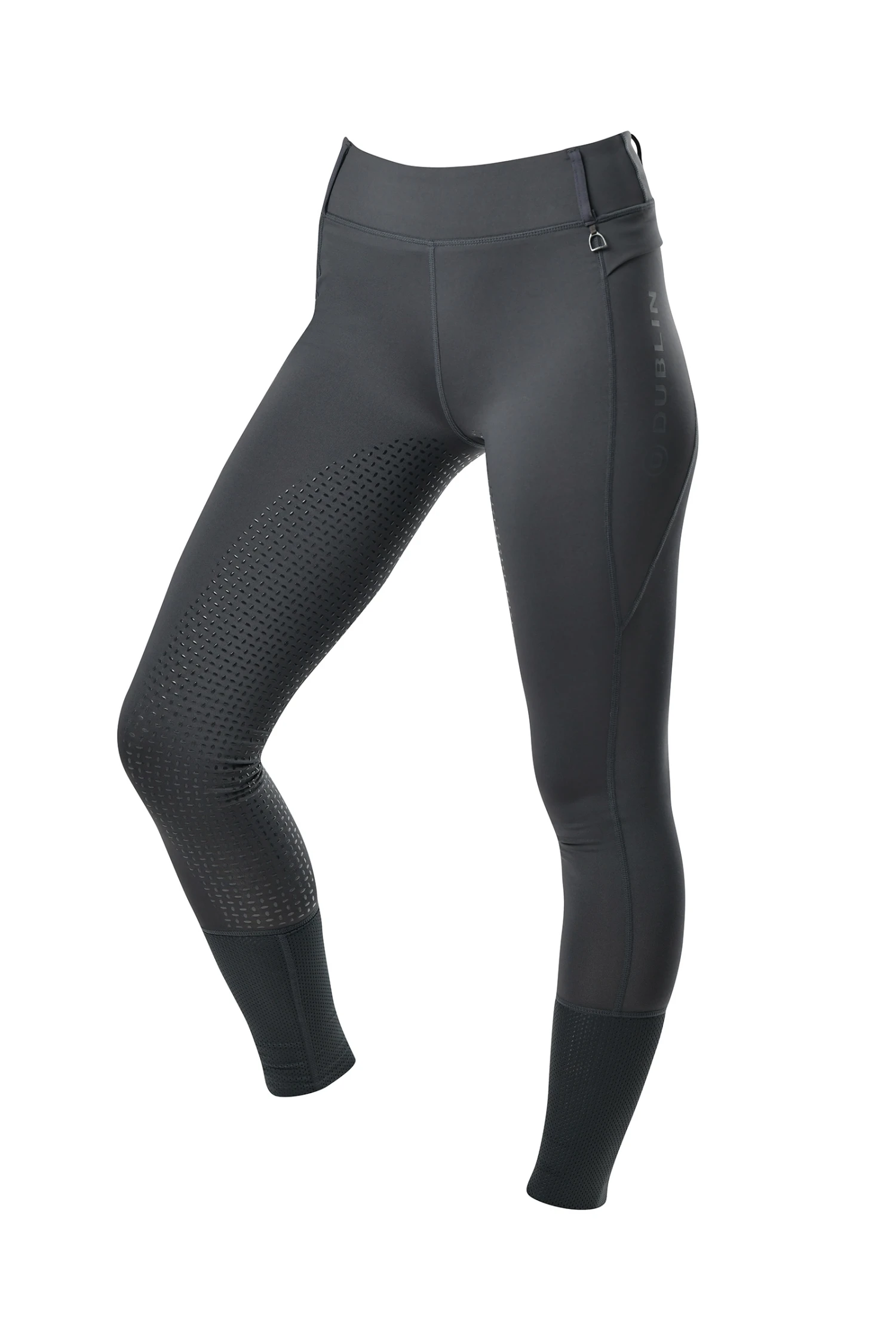 Dublin Cool IT Everyday Damenreitleggings mit Comfort Dry-Technologie. Dieses System sorgt dafür, dass jegliche Feuchtigkeit schnell trocknet, damit du kühl, bequem und trocken bleibst. Entwickelt, um an den richtigen Stellen zu formen, um dir die perfekte Reitsilhouette zu geben.