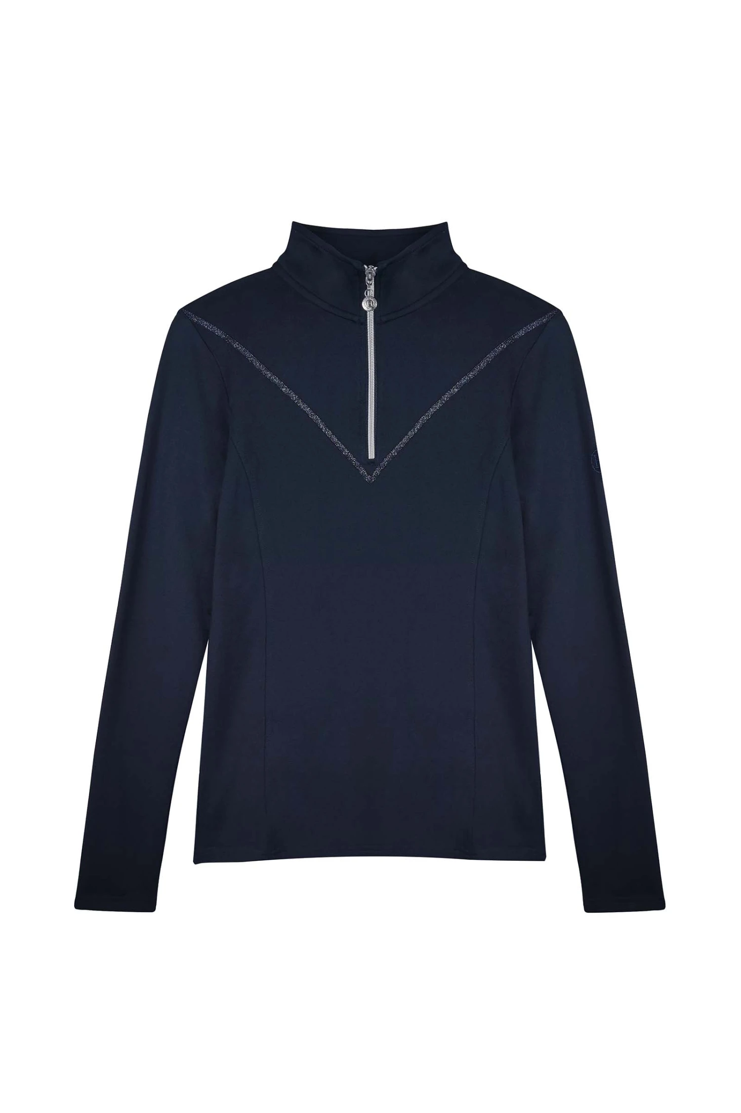 Das POETE Polo Shirt sieht dank seiner schmalen Passform und dem glänzenden V auf der Vorderseite feminin aus und ist sehr angenehm zu tragen. Es ist ideal für einen bequemen Sportswear-Look. Das Polo wird vorne am Kragen mit einem Reißverschluss geschlossen.