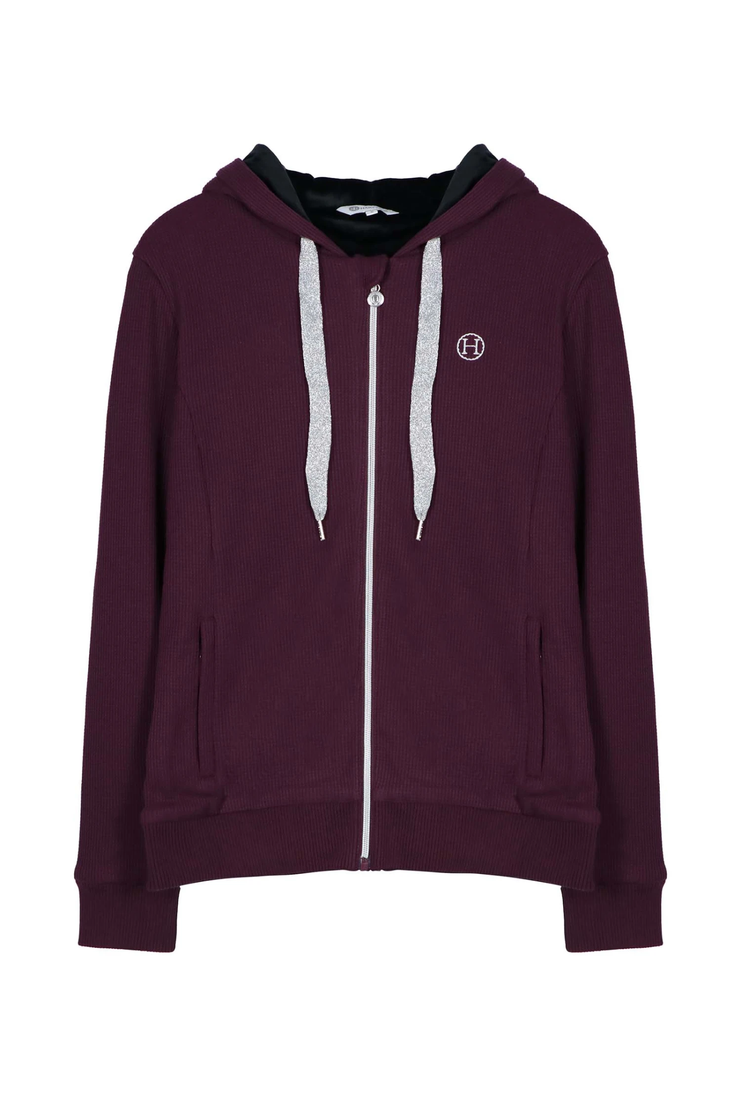 Dieser Hoodie für Damen ist aus Waffel-Baumwollstoff für einen modernen und lässigen Look. Sein Kunstfell-Innenfutter wird dein bester Verbündeter sein, um warm zu bleiben! Dank des durchgehenden Reißverschlusses lässt sich dieses Sweatshirt beim Reiten oder beim Sport leicht an- und ausziehen. Die silbernen Kordelzüge und das Harcour-Logo machen es extrem trendig.