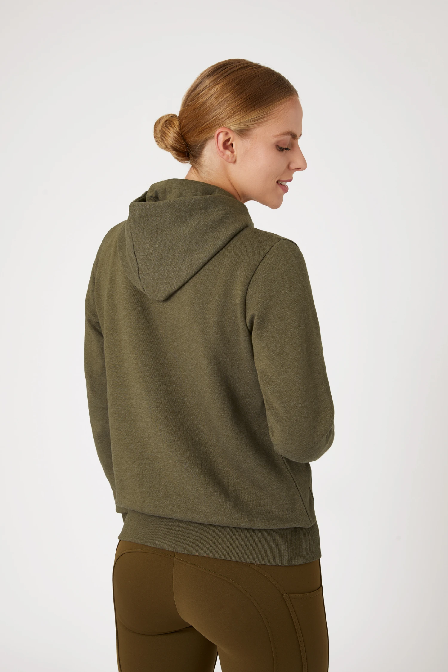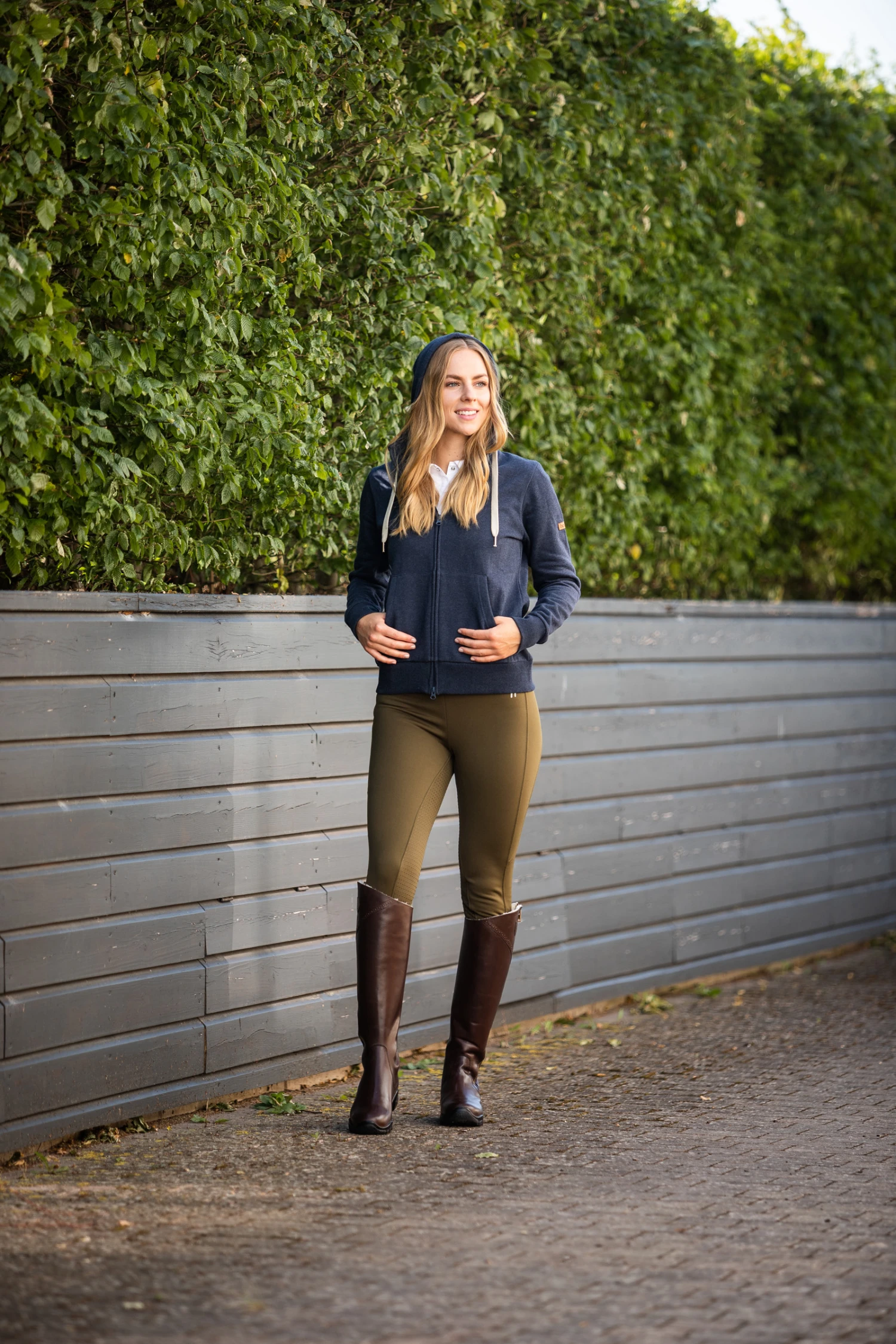 Die Horze Adena Sweatshirtjacke ist aus weichem Baumwoll-Mix hergestellt. Gerippte Bündchen und Saum sowie die verstellbare Kapuze sorgen für Wärme und Komfort. Die Kängurutaschen sind praktisch. Klassische Farben und eine bequeme Passform passen perfekt zu deiner Reitgarderobe.