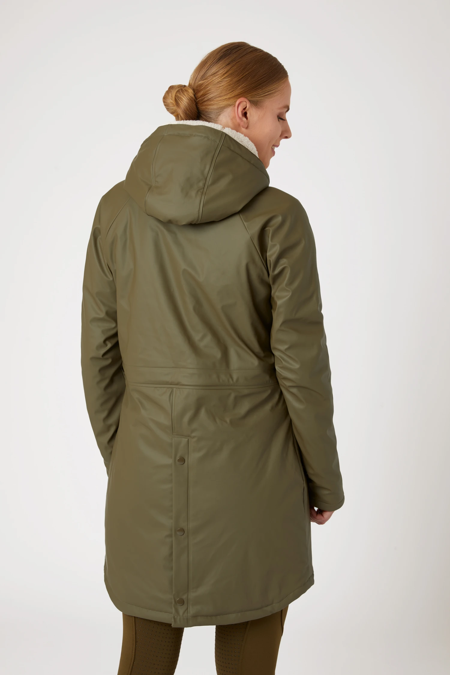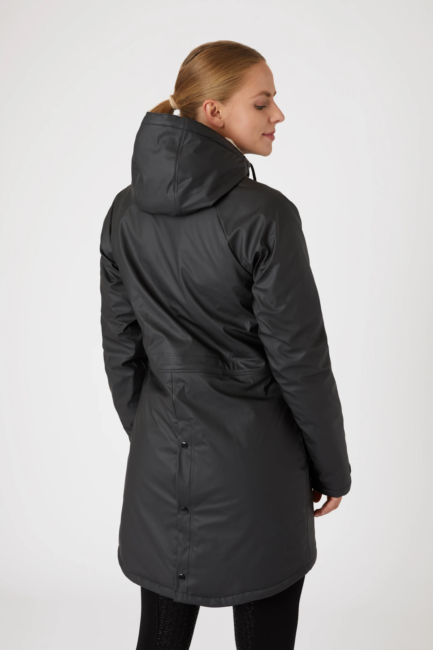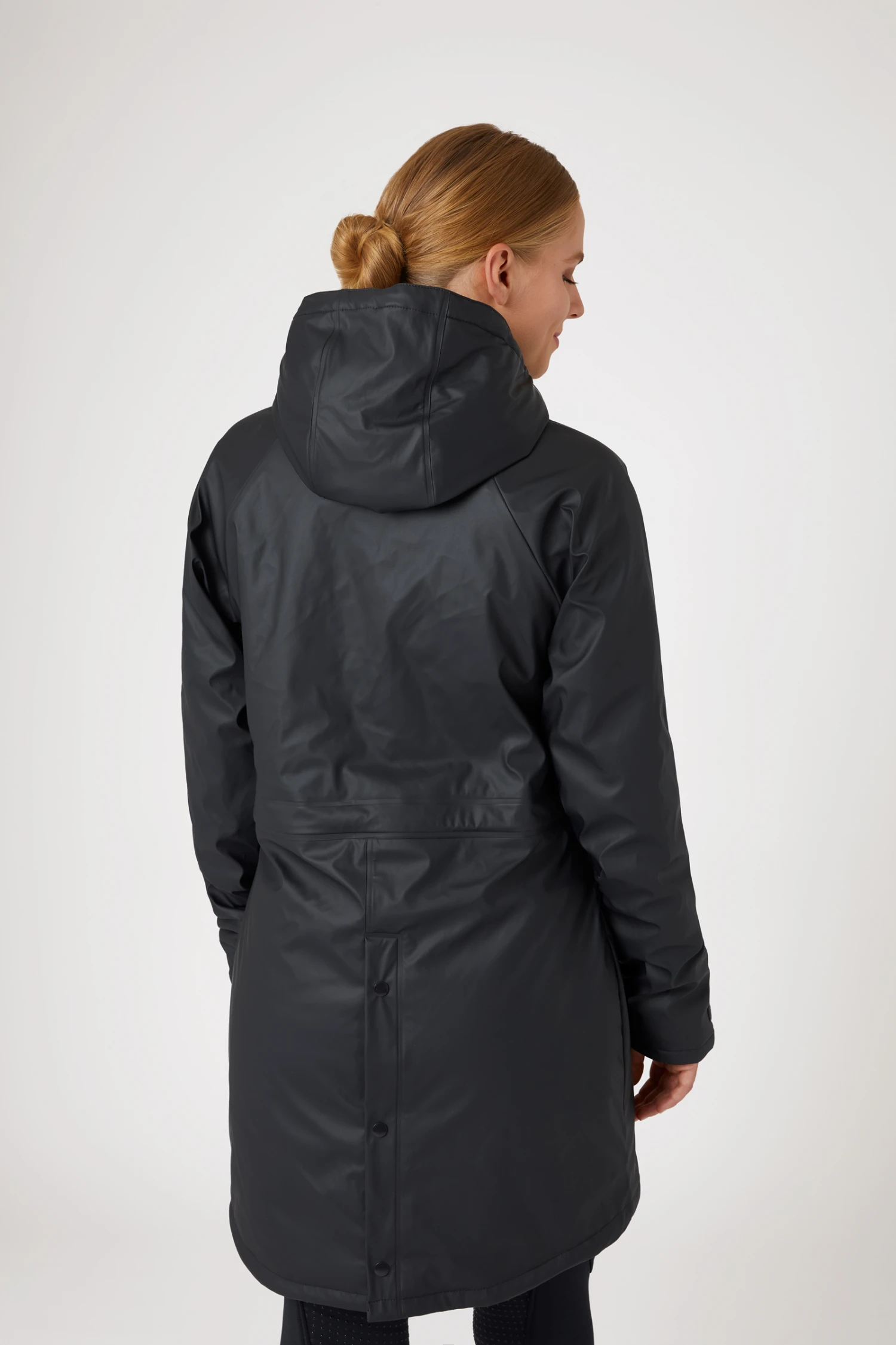 Dieser weiche, wasserdichte Mantel hält dich auf regnerischen Ausritten warm.
