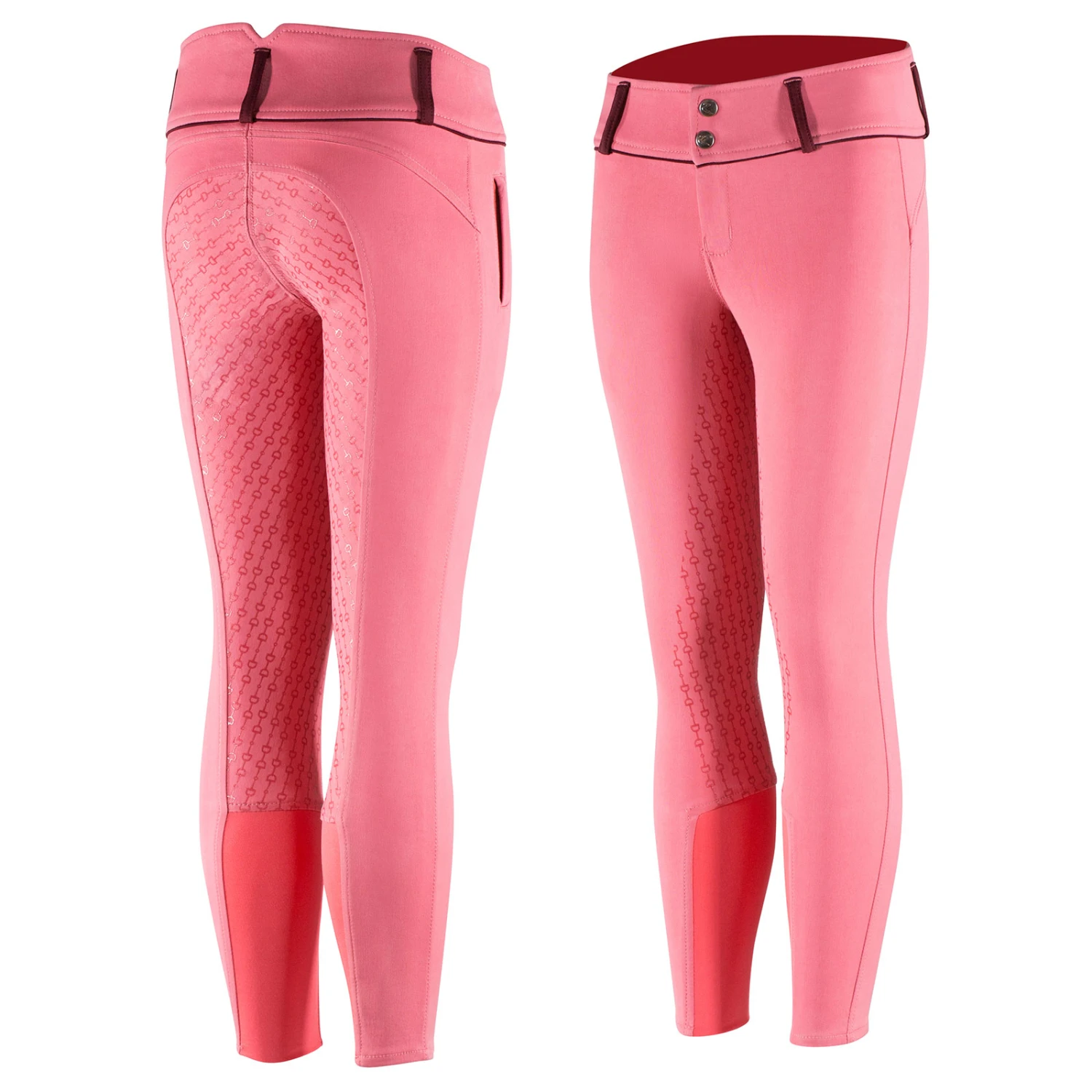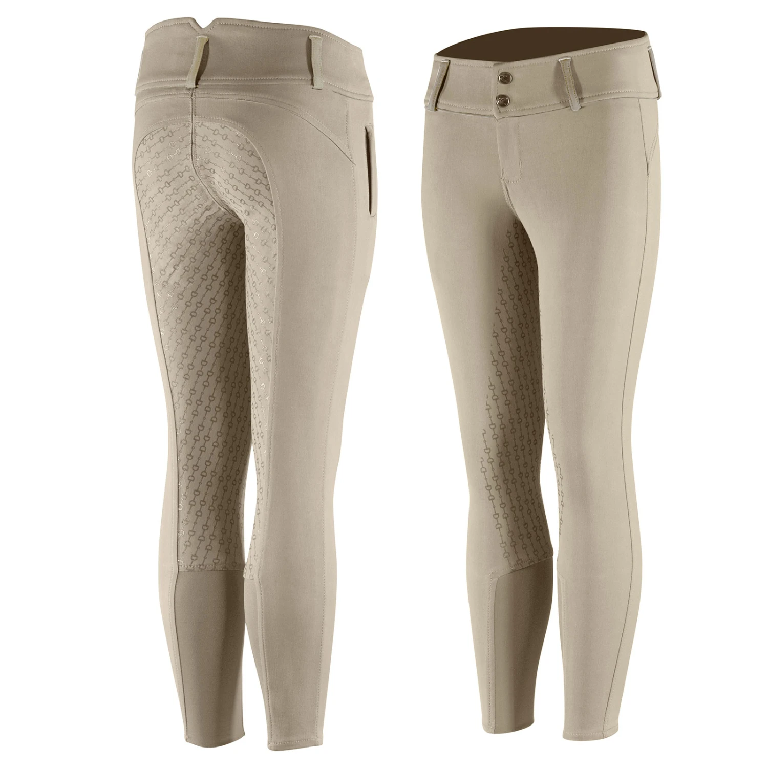 Traditioneller Stil, kombiniert mit frischem Silikon Aufdruck auf dem Besatz, somit Ihr unmittelbarer Favorit. Der hohe Bund dieser traditionellen Reithose ist bequem und unterstützend, hinten leicht höher. Diese Reithose hat einen stilvollen, sich wiederholenden Gebiss Aufdruck auf dem Ton-in-Ton Vollbesatz für einen einzigartigen Look. Klassische Farben sind für das Training genau richtig.