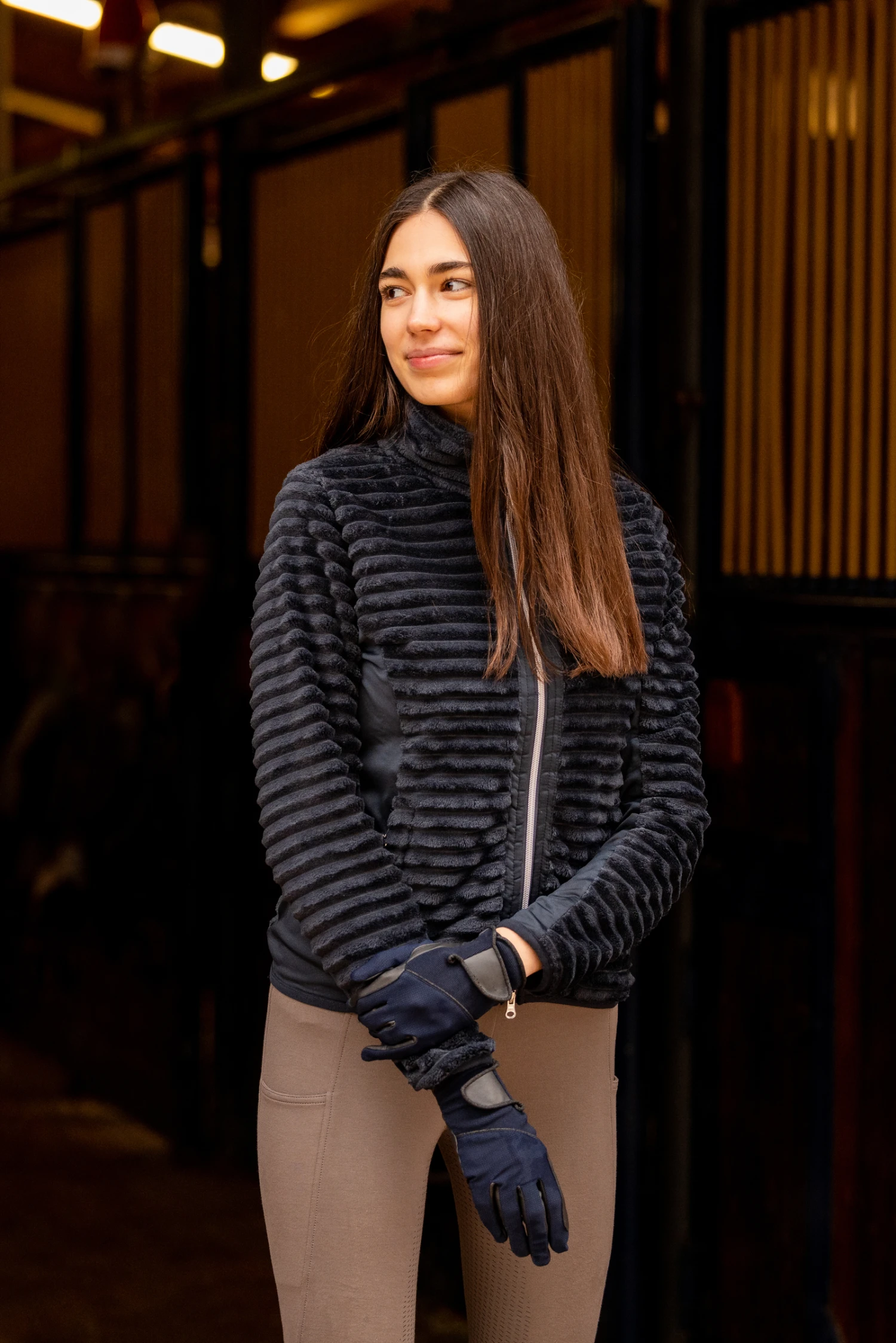 Die Della Jacke von Horze ist aus gestreiftem Fleece gefertigt, das dich warm hält. Elastische Seiteneinsätze und Ärmel sorgen für Flexibilität. Zwei Reißverschlusstaschen bieten Platz für dein Handy, Schlüssel und Pferdeleckerlis. Trage die Jacke an milden Tagen über deinem Lieblingsshirt oder im Winter als zusätzliche Schicht.