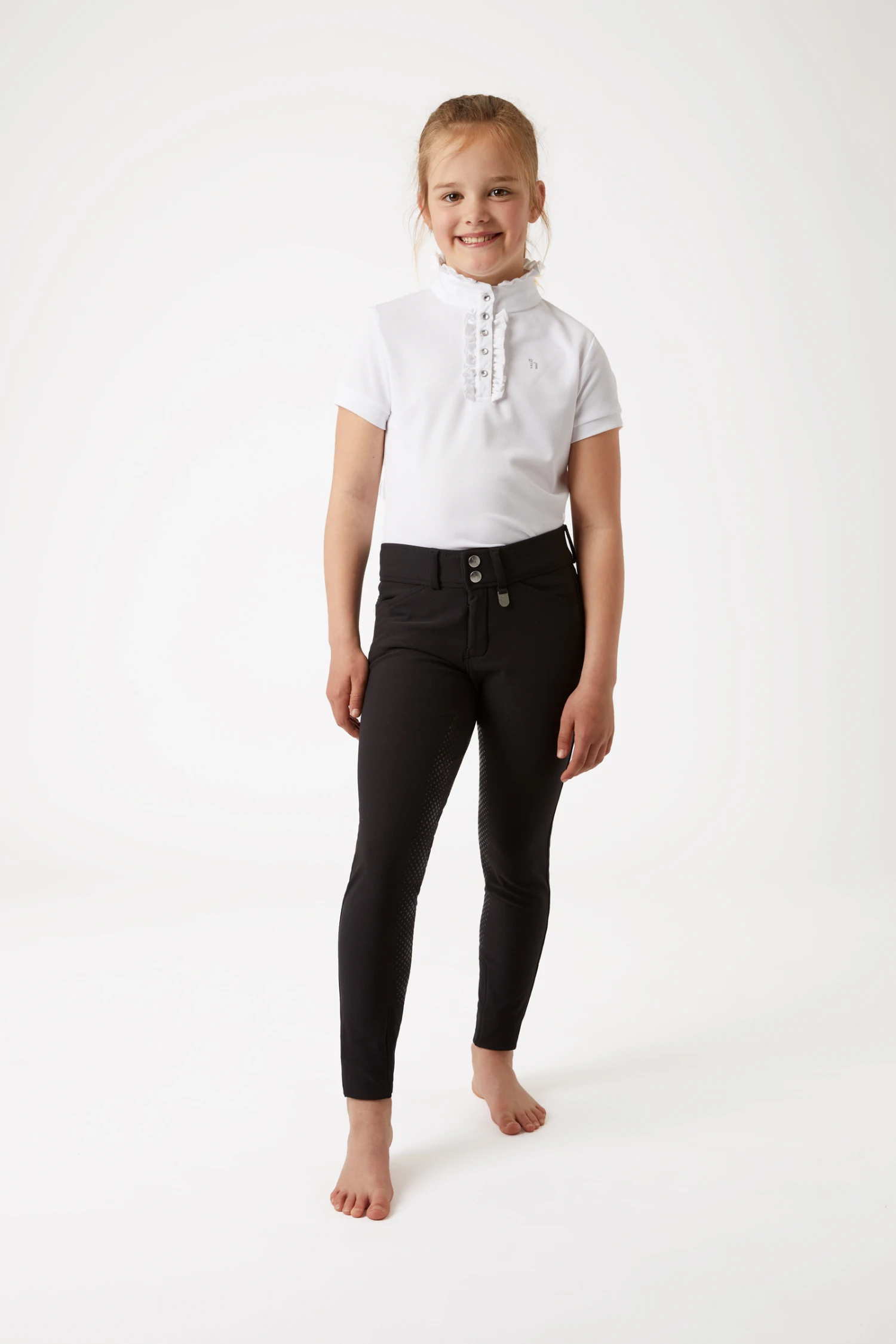 Wenn Sie einen Lehrgang reiten, eine wöchentliche Reit- oder Springstunde, diese neue und verbesserte, klassische Reithose verleiht Ihrem Look eine professionelle Note. Der Grand Prix Stil ist eine bewährte Wahl von Top-Sportlerinnen und für Reiter aller Disziplinen. Der Schnitt ist elegant, formal und zeitlos. Der Stoff ist so konzipiert, dass er den ganzen Tag staub- und schmutzfrei bleibt und das atmungsaktive Material bietet Komfort und Halt ohne Volumen. Ein bequemer Bund ergänzt das Gesamtpaket und Sie wählen diese Reithose, wenn Sie Ihr Bestes geben und sich fühlen wollen.