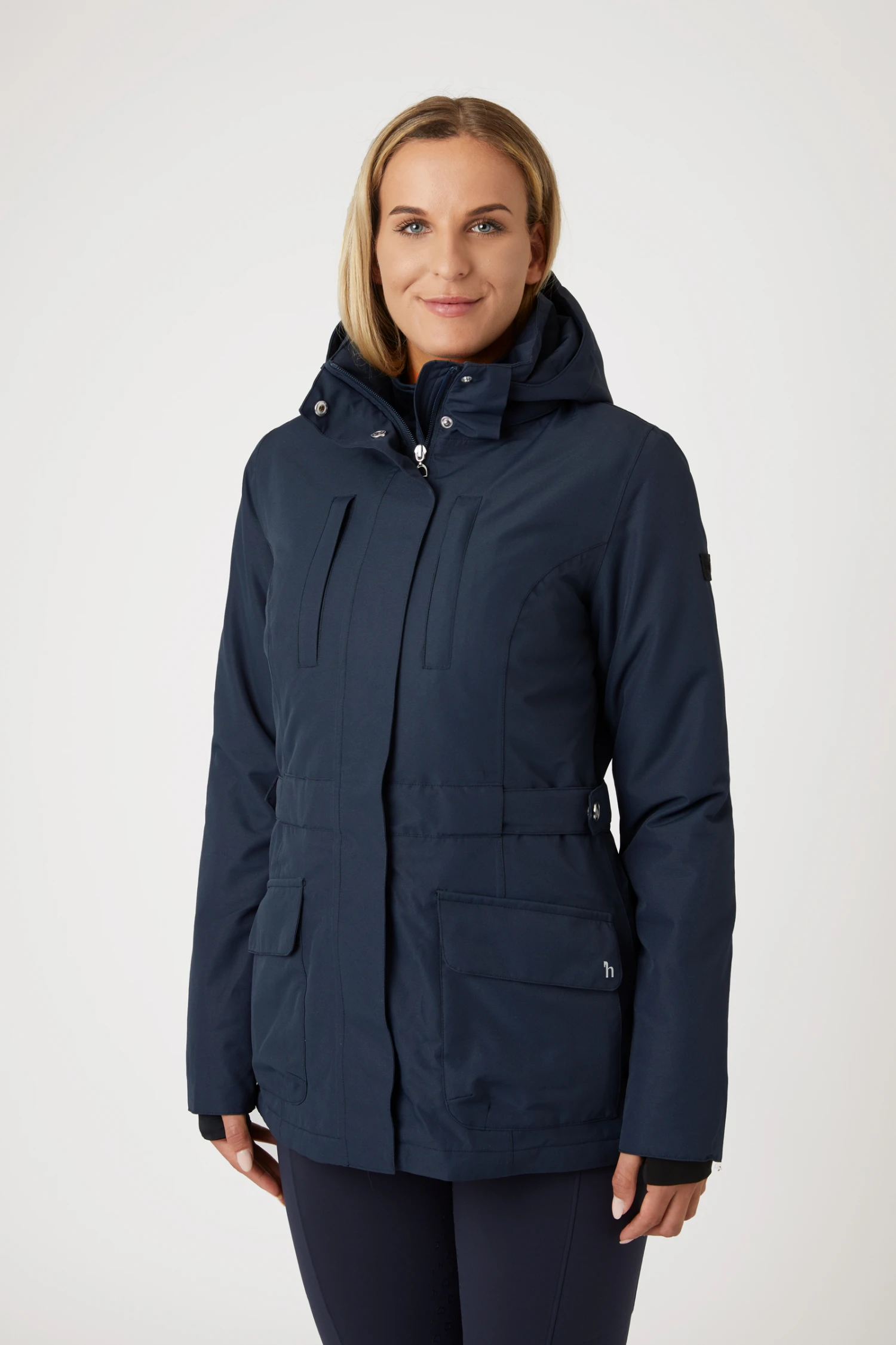 Unsere Jadine Winterjacke besteht aus strapazierfähigem, wasserdichtem Material. Sie ist leicht und gleichzeitig warm. Atmungsaktives Gewebe sorgt für gute Belüftung beim Reiten. Ein Reißverschluss auf der Rückseite bietet Platz beim Reiten. Die Kapuze ist abnehmbar. Die Reißverschlusstaschen sind perfekt für dein Telefon und Schlüssel.