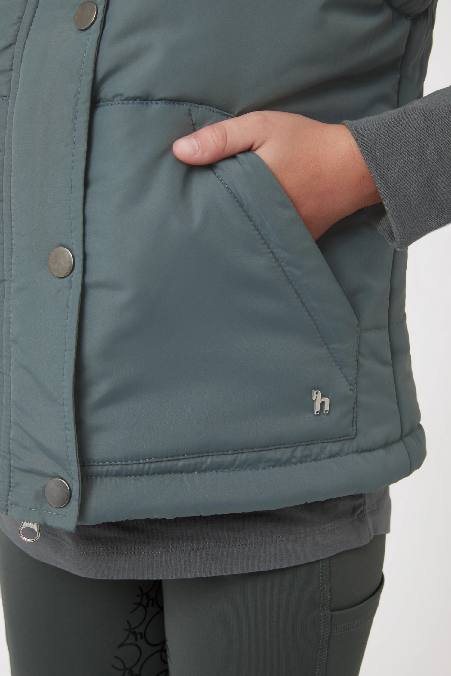 Die Horze Leighton Teenager Reitweste ist winddicht und warm, perfekt für deine Winterausritte. Das wasserabweisende Material hält dich außerdem trocken. Die abnehmbare Kapuze sorgt für zusätzliche Wärme, und in den zwei Taschen kannst du deine Sachen sicher verstauen. Die modischen Farben lassen sich leicht in deine Winterreitgarderobe einbauen. Kombiniere diese Weste mit dem Rest unserer Horze Leighton Teenager-Kollektion für einen kompletten Look! Auch als Jacke erhältlich.