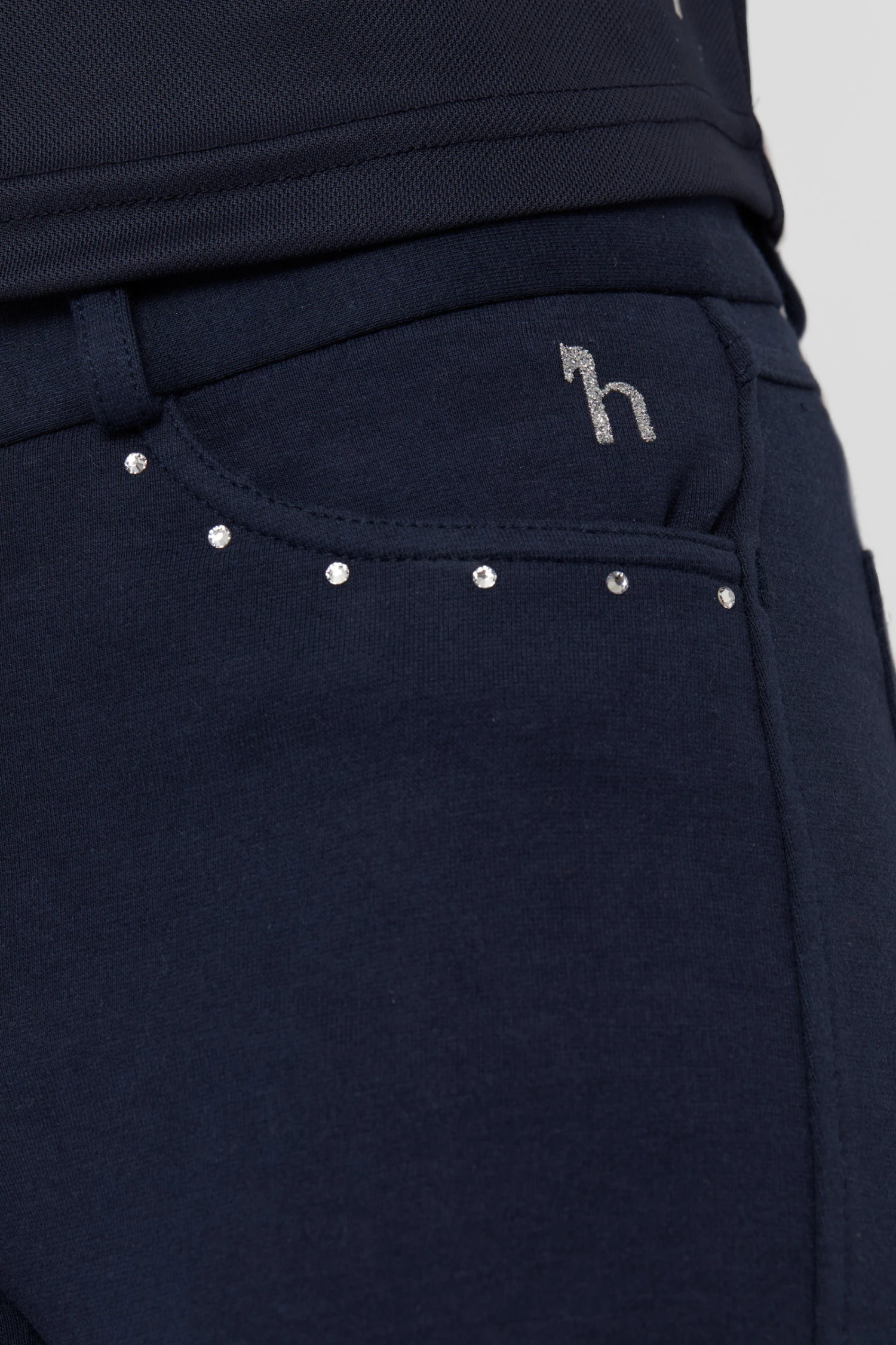 Mit Kristallsteinen besetzte Taschen sorgen für den außergewöhnlichen Look dieser Reithose und der Silikondruck begeistert mit einem lustigen Herz- und Sterne-Motiv. Das gestrickte Baumwollgewebe ist weich und dehnbar, das An- und Ausziehen ist somit ein Kinderspiel. Der hohe Bund sorgt dafür, dass junge Reiter bequem im Sattel sitzen.