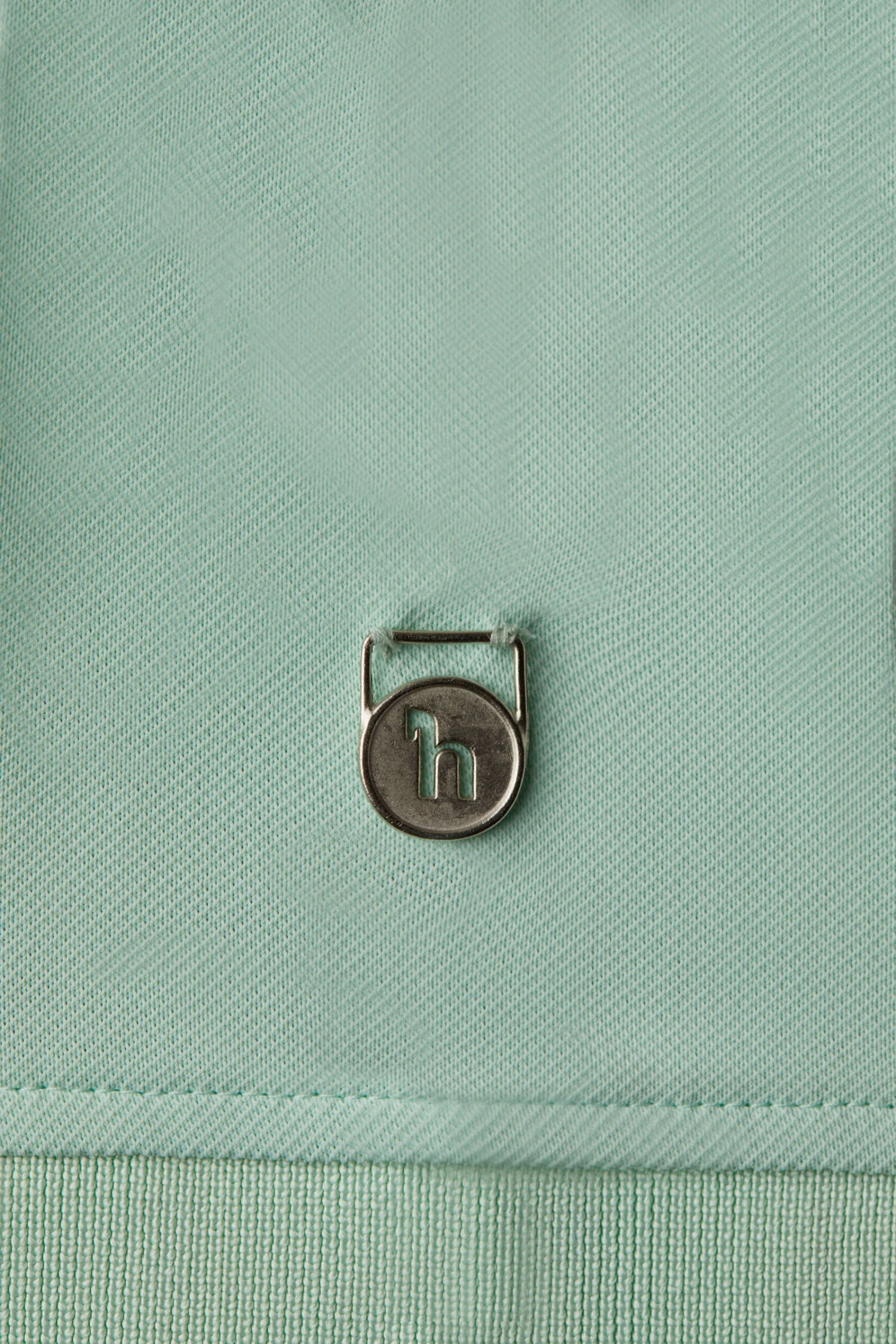 Dank des atmungsaktiven, feuchtigkeitstransportierenden Gewebes hält dich dieses klassische Damen-Polo auch an wärmeren Tagen angenehm kühl. Außerdem ist das Shirt antibakteriell und bietet UV-Schutz, was es zur perfekten Wahl für schweißtreibende Ritte an heißen Sommertagen macht. Die Vorderseite lässt sich mit einer Reihe versteckter Kunststoffknöpfe öffnen, die ein einfaches An- und Ausziehen ermöglichen, ohne den Style zu stören.