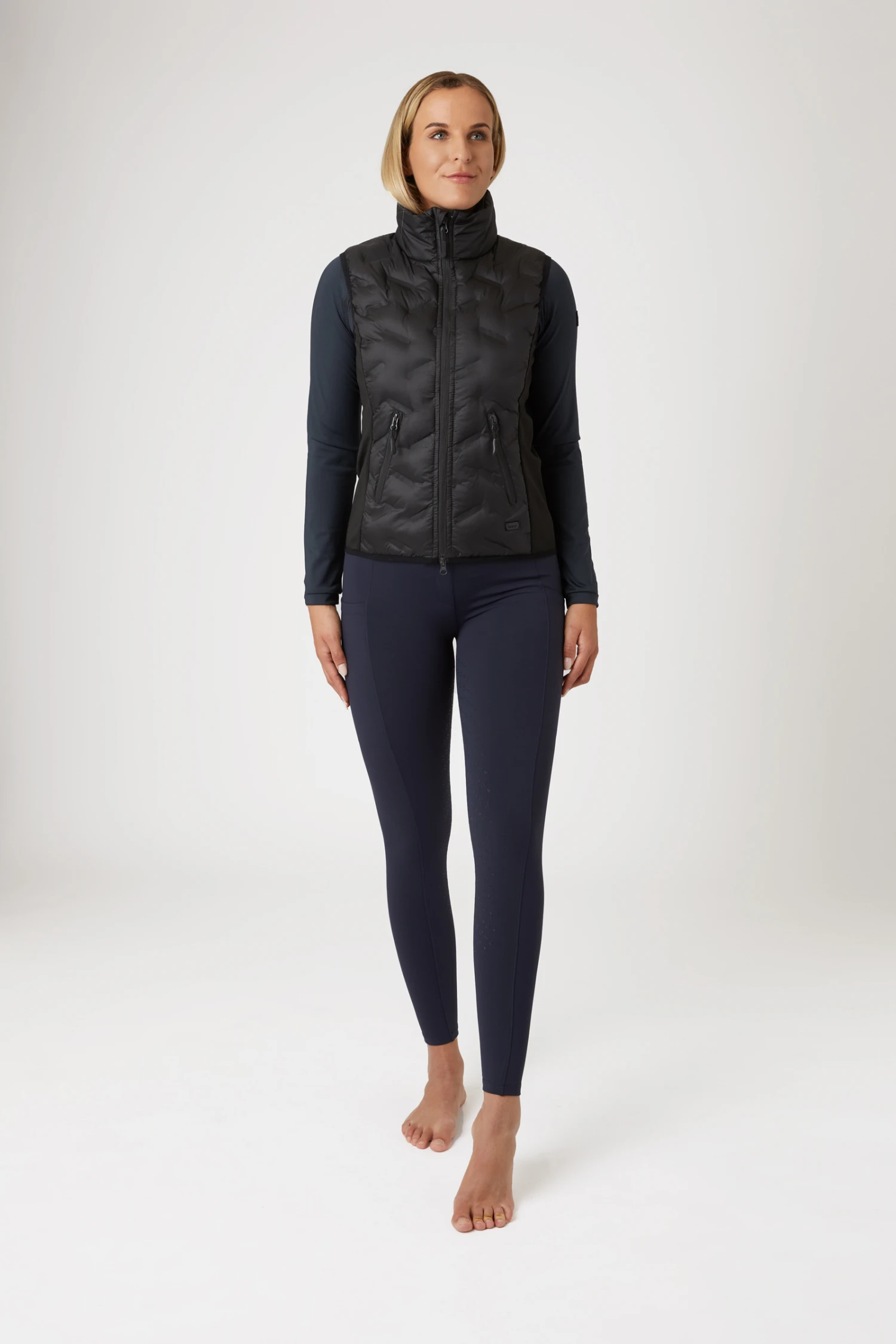 Leichte Steppung kombiniert mit den seitlichen Einsätzen aus Stretchmaterial sorgen für den ultimativen Tragekomfort der leicht gefütterten Horze Shelly Weste. Die Weste passt gut zu Jeans in der Freizeit und natürlich zu deiner Lieblingsreithose für einen tollen Look im Herbst. Der Stoff ist wasserabweisend und atmungsaktiv, die Länge ist auch zum Reiten perfekt.