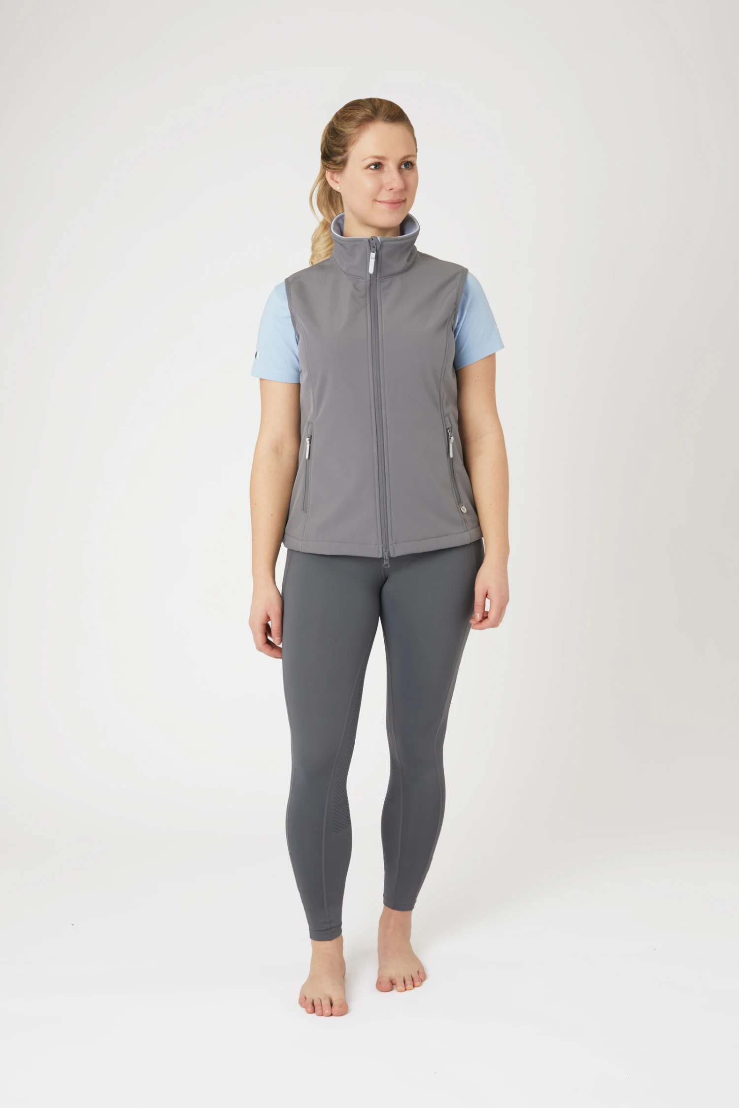 Diese funktionelle Softshell-Weste für Damen mit einem weichen Fleece-Futter in Kontrastfarbe ist die perfekte Wahl für den Lagenlook oder für wärmere Frühlingstage. Das wasserabweisende Material und der leichte Stehkragen sind bei weniger schönem Wetter sehr praktisch. Der Zwei-Wege-Frontreißverschluss macht die Jacke perfekt für das Reiten und die geräumigen Reißverschlusstaschen ermöglichen es dir, Schlüssel oder dein Handy zu verstauen, während du im Stall bist. Der Kordelzug im hinteren Taillenbereich sorgt für eine schmeichelhafte Figur, wenn er angezogen wird.