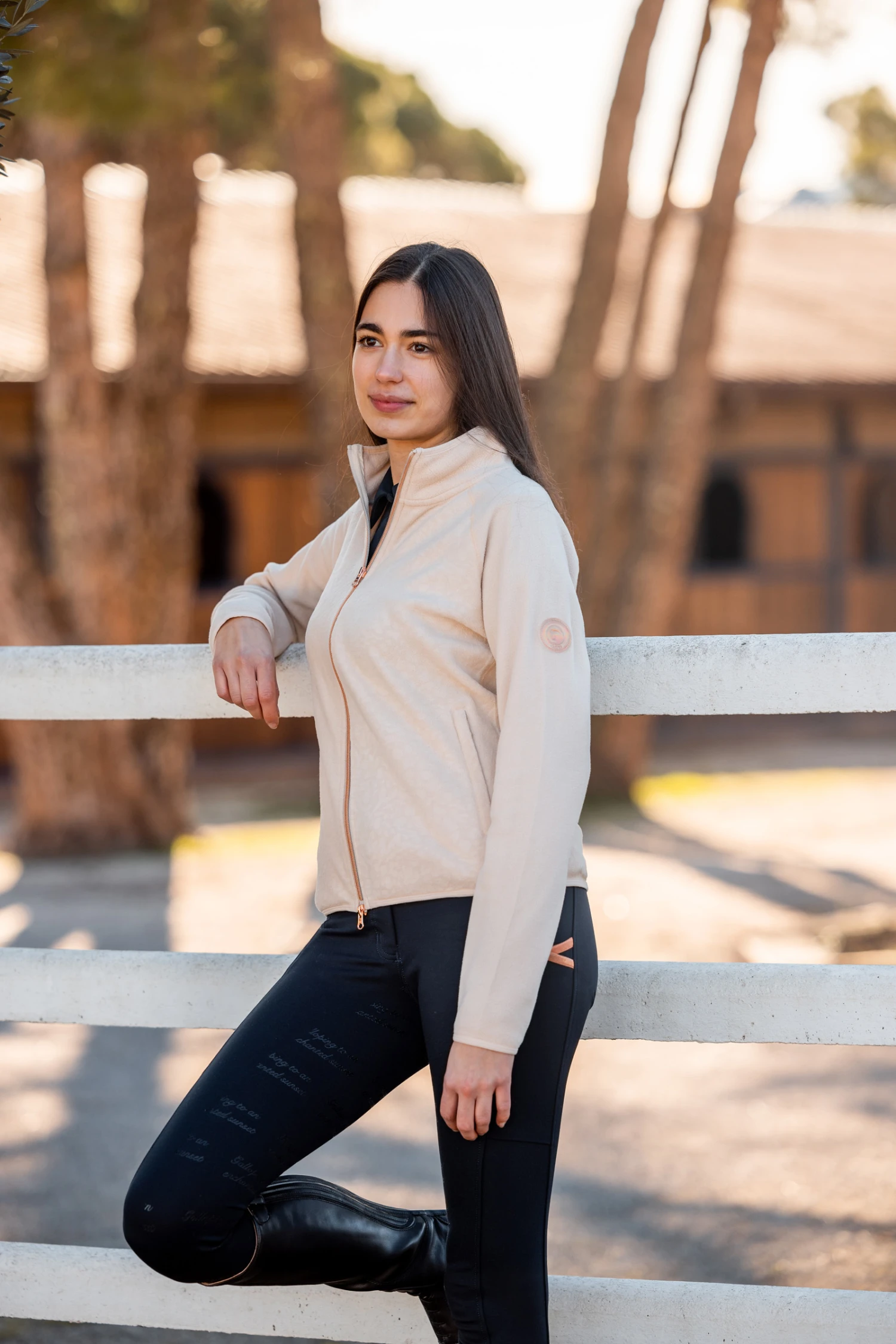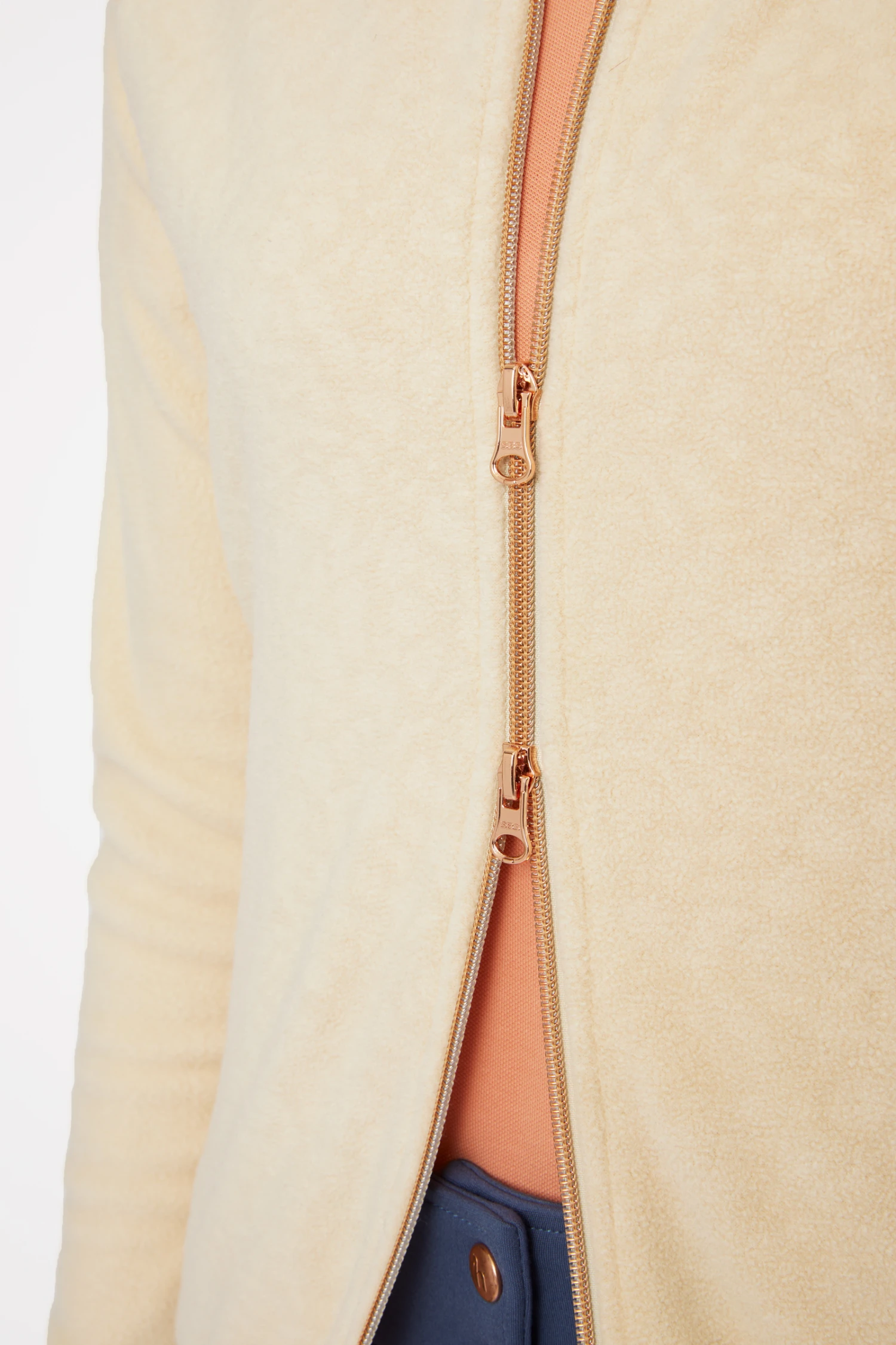 Die Jacke besteht aus weichem, atmungsaktivem und leichtem Fleece. Der Körper ist mit einem phantasievollen Muster geprägt, das stilvoll zum roségoldenen Zwei-Wege-Reißverschluss passt. Der etwas höhere Kragen kann einen Schal ersetzen. Zwei Vordertaschen mit Reißverschlüssen zum Verstauen kleinerer Dinge. Logoplakette aus Gummi auf dem linken Ärmel. Eine perfekte Option für den Zwiebellook, um Wärme zu erzeugen, ohne aufzutragen.