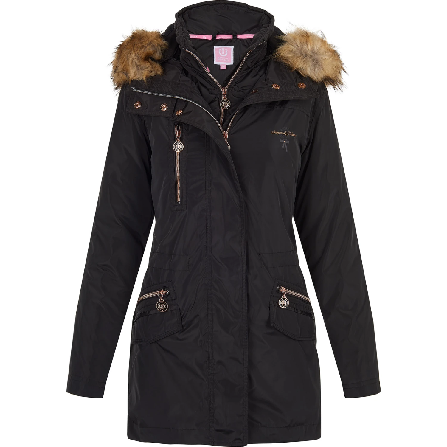 3 in 1 Parka-Jacke mit abnehmbarer Kunstfellkapuze an der Innenjacke. Die Ärmel der Innenjacke sind durch einen Reißverschluss abnehmbar, die Außenjacke ist wasserdicht, hat eine Taillenkordel, Taschen mit Klappen und einen Schlitz am Rücken. Mit Zweiwege-Reißverschluss an der Außenjacke.