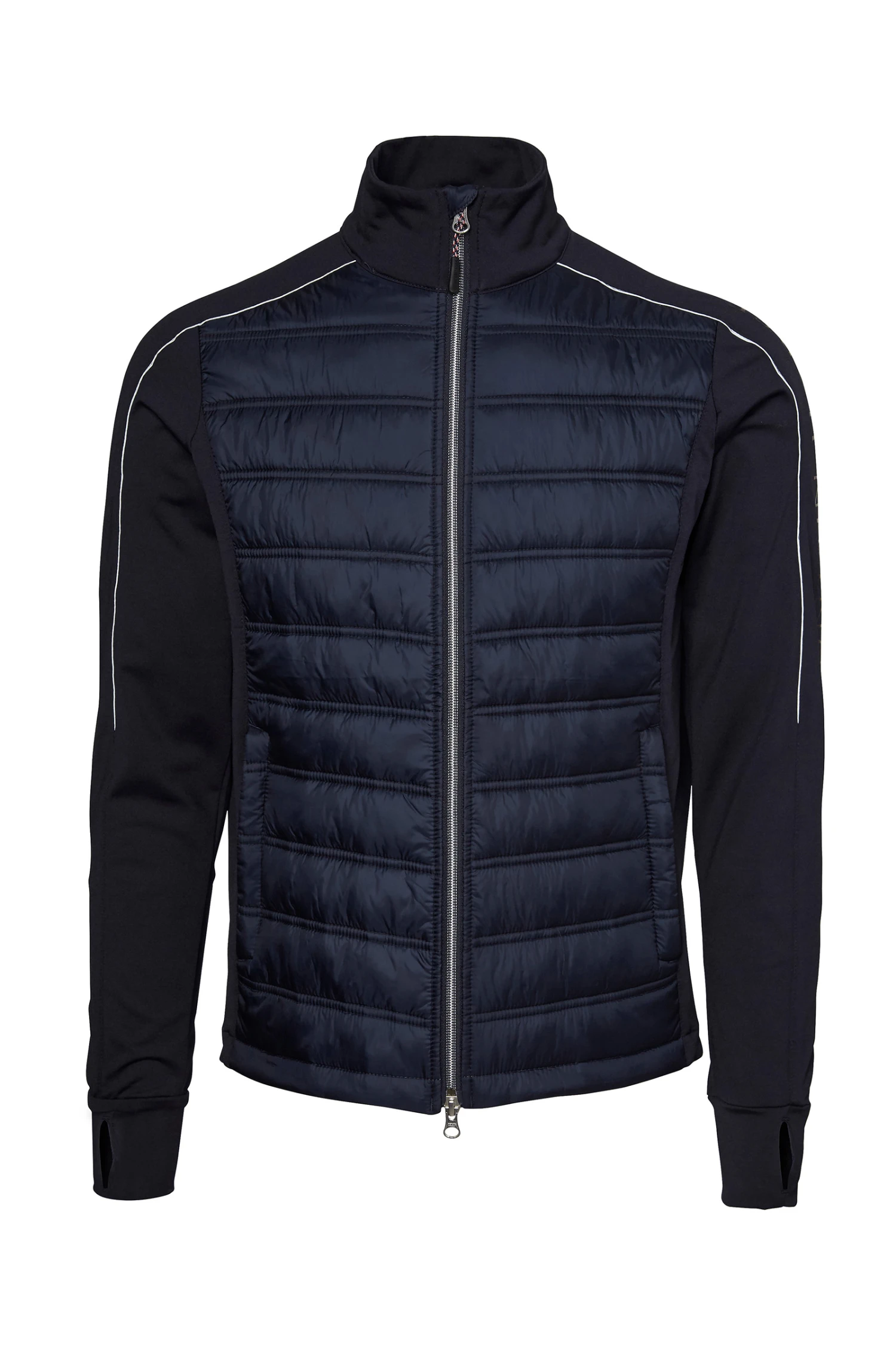 Sportliche Unisex-Hybridjacke mit bequem gepolstertem Rumpf und Seitenteilen und Ärmeln aus Stretch-Techno-Fleece.