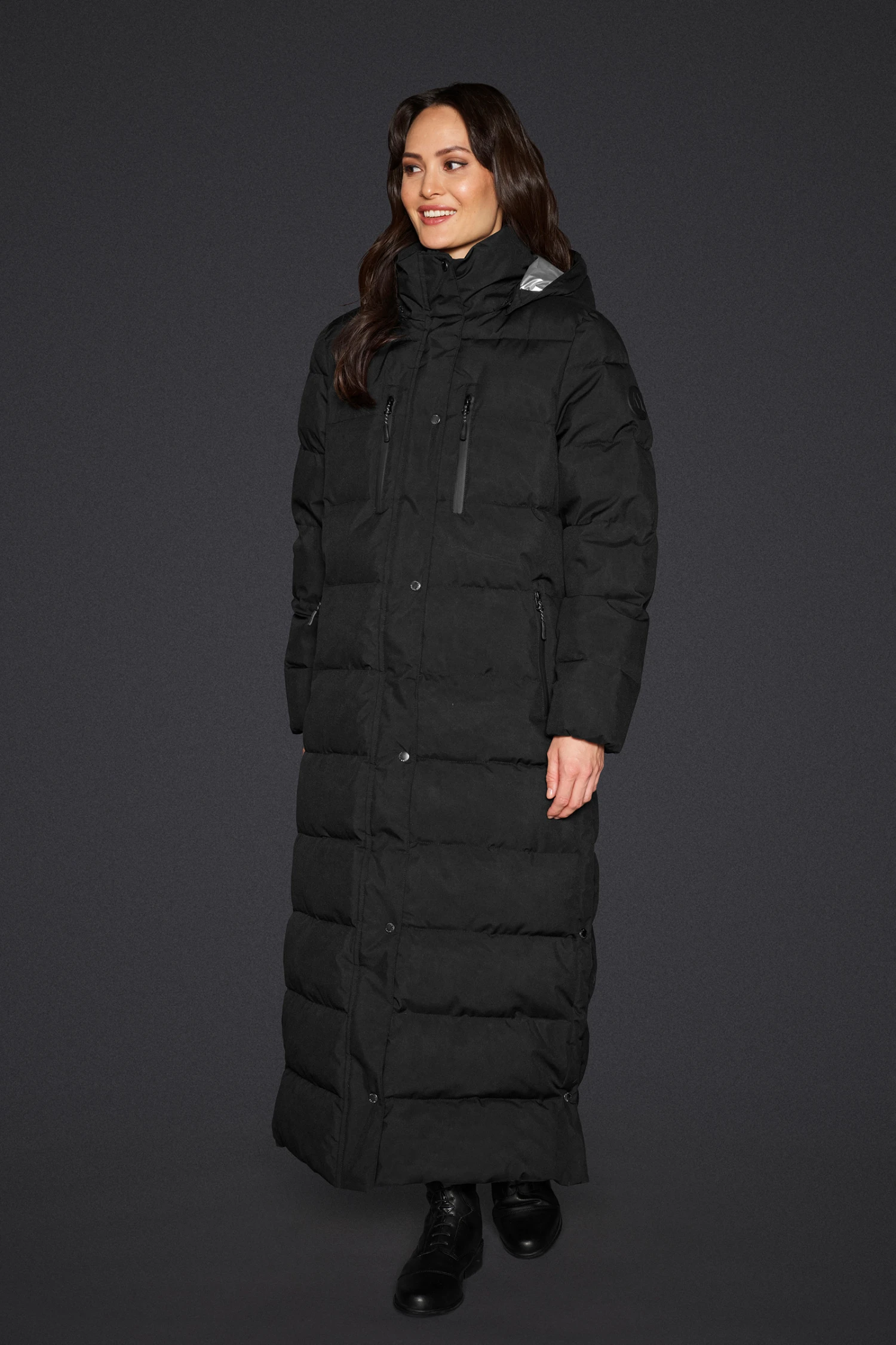 Langer, warm gefütterter Mantel mit hohen Seitenschlitzen.