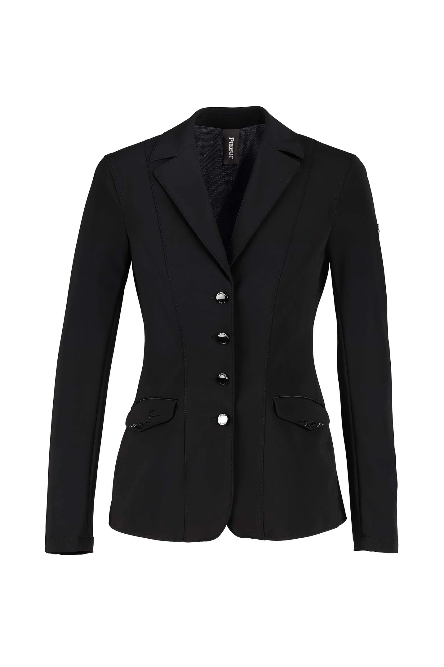 - Pattentaschen mit dezent toniger Rhinestone Applikation und zartem Satin Piping, wiederkehrend am Krageneinsatz und im Taillenbereich des Rückenteils