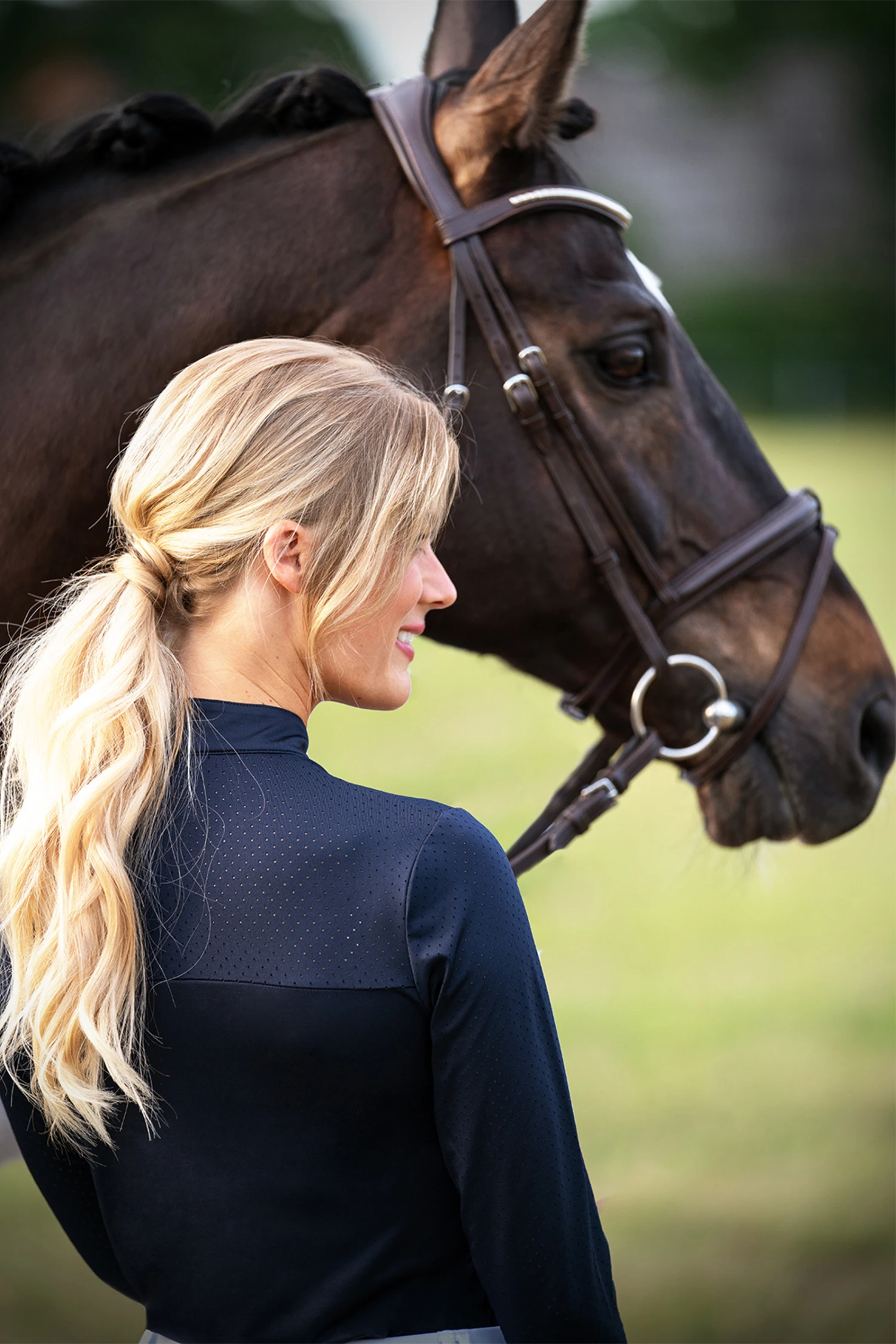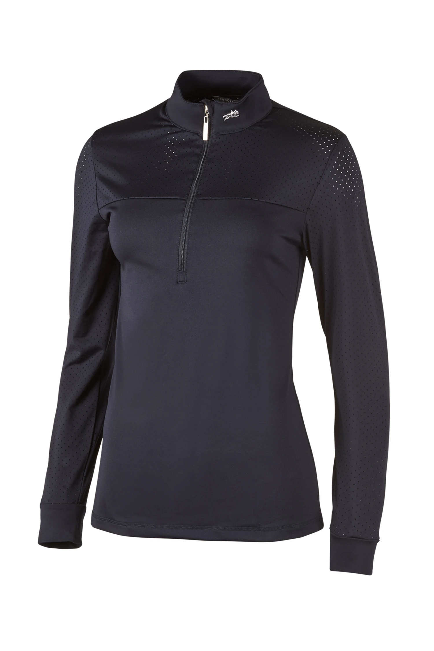 - Logo-Strass-Pferdchen auf dem Stehkragen