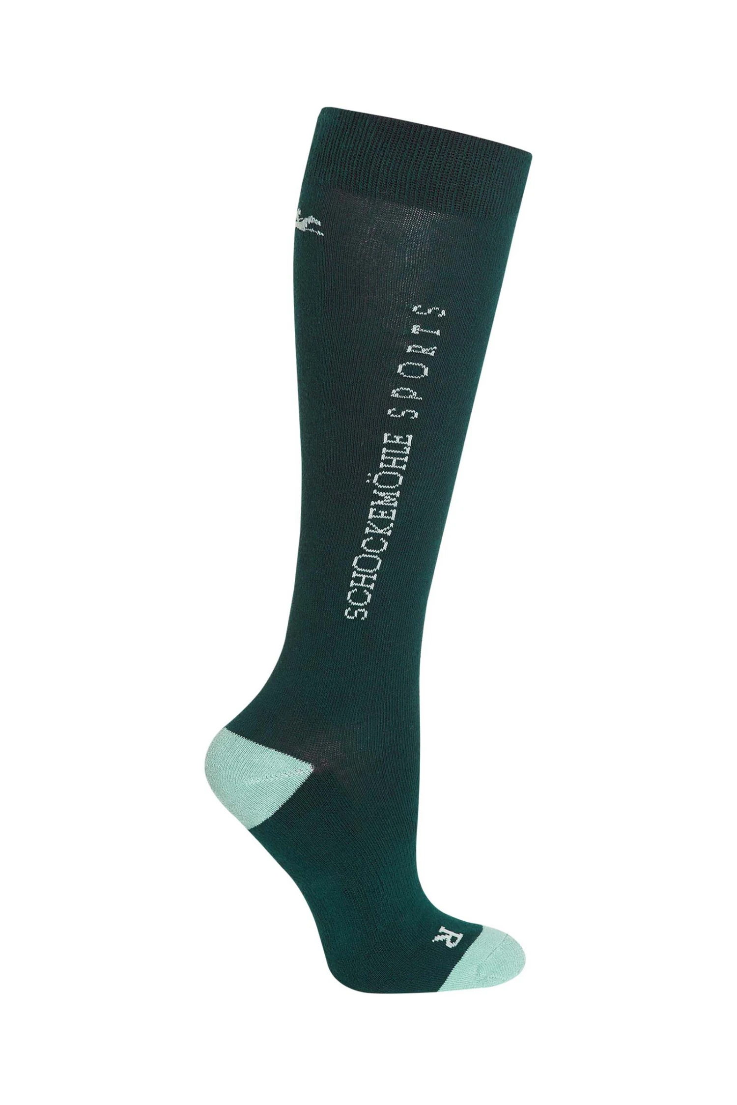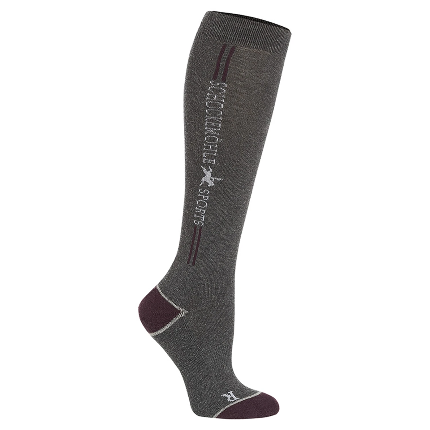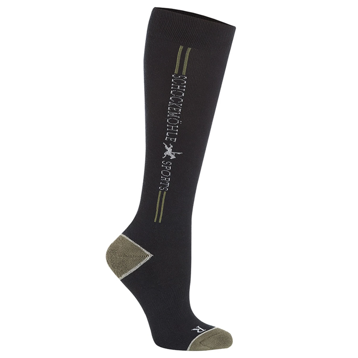 Die sportlichen Kniestrümpfe von Schockemöhle Sports schützen vor kalten Füßen im Stall. Mit einem schicken Jacquard Logo verziert, können sie auch gut über der Reithose getragen werden. Der weich gefütterte Fuß hält angenehm warm.