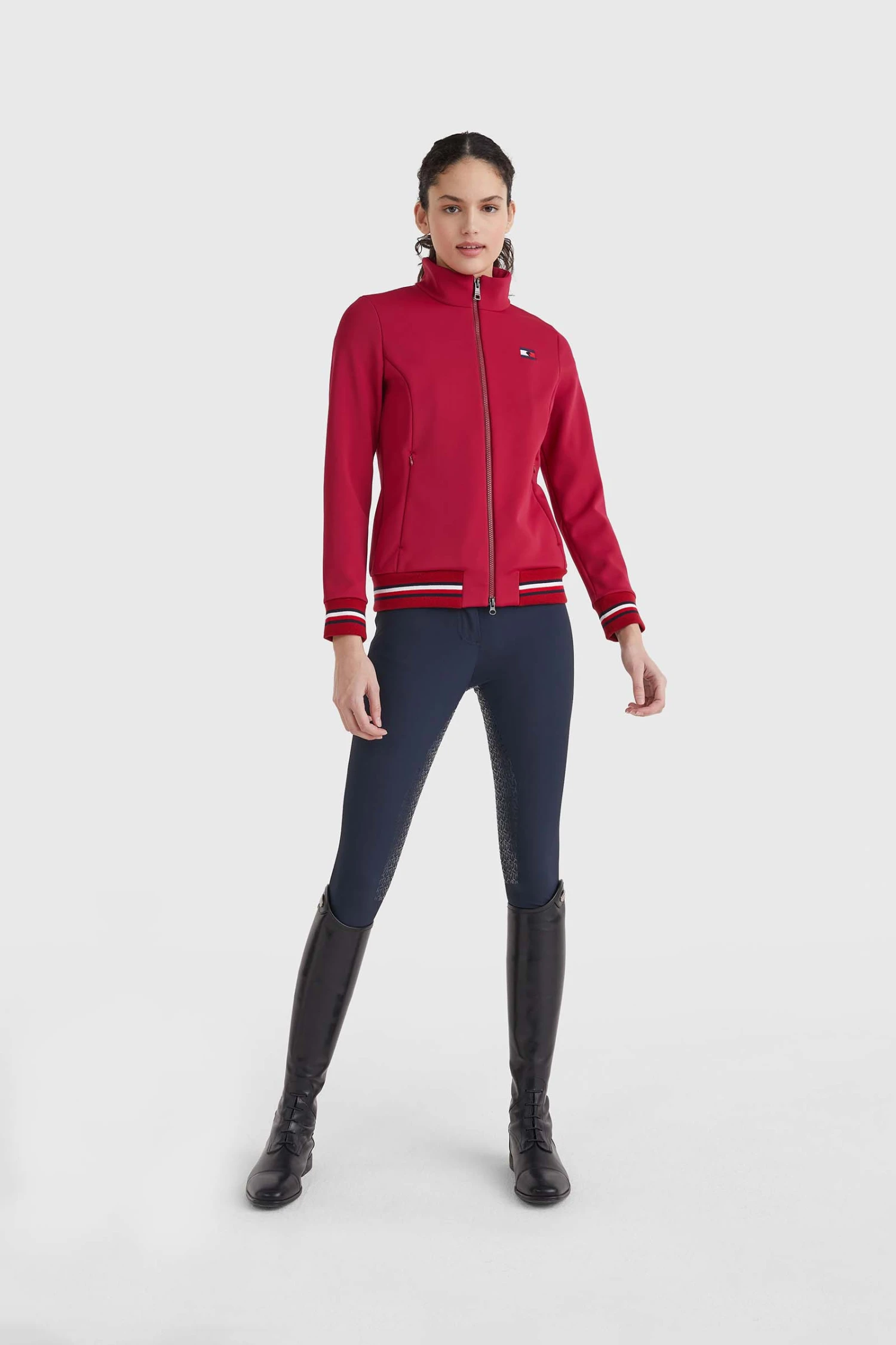 Softshelljacke von Tommy Hilfiger mit 2 Reißverschluss-Seitentaschen, elastisch anliegenden Ribbündchen mit dezentem Tommy Hilfiger Stripe am Saum und am Ärmelabschluss. Die Jacke besitzt eine Logo Stickerei auf der linken Brust und TH Global Streifenband Applikation hinten über dem Kragen.